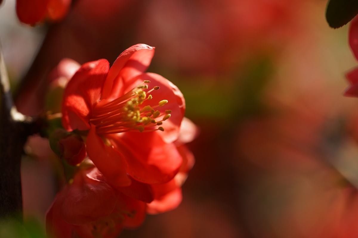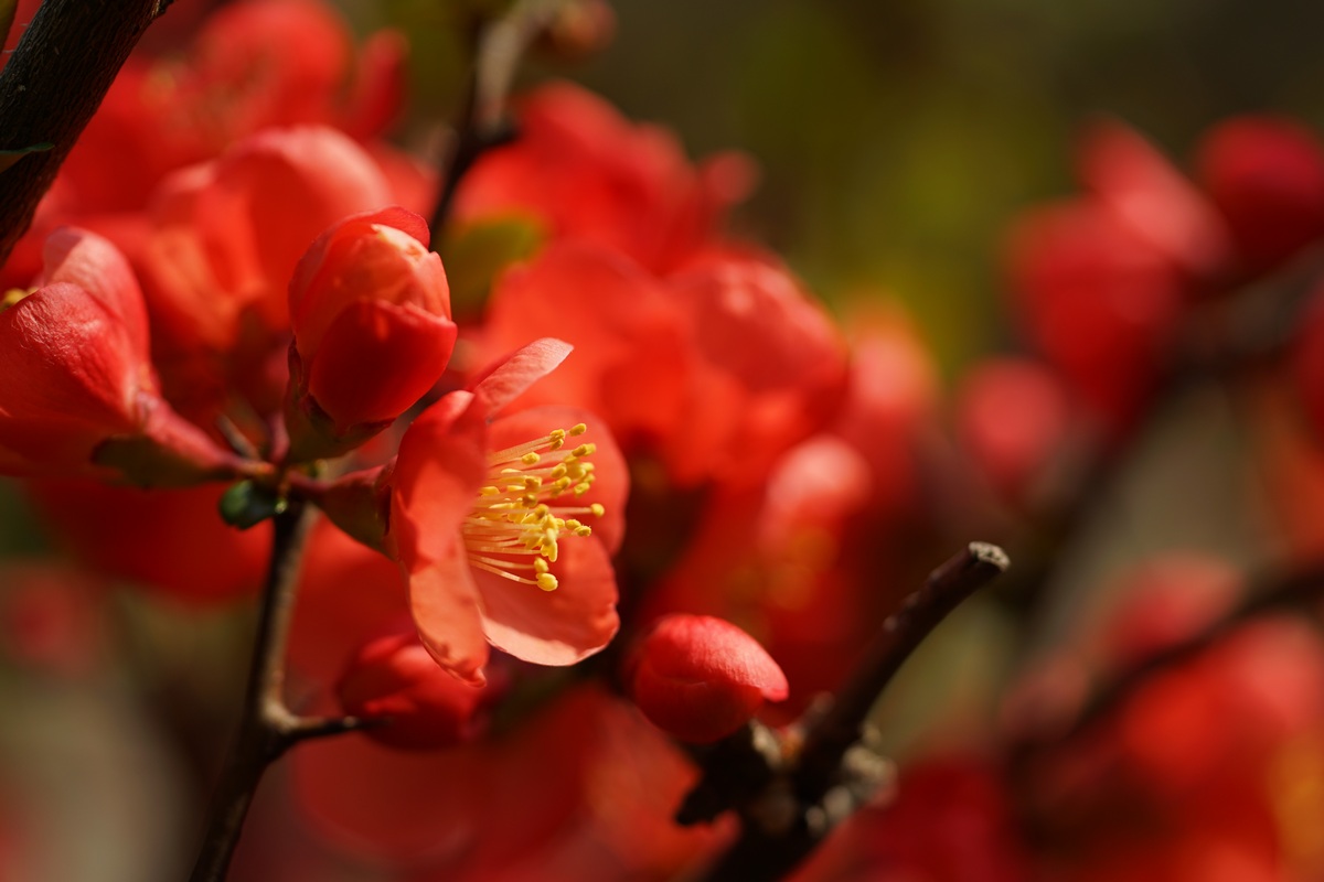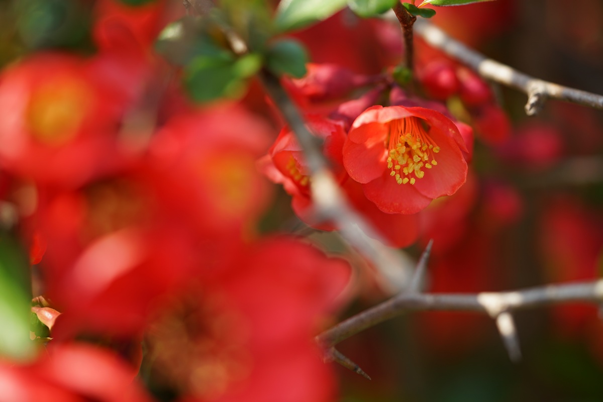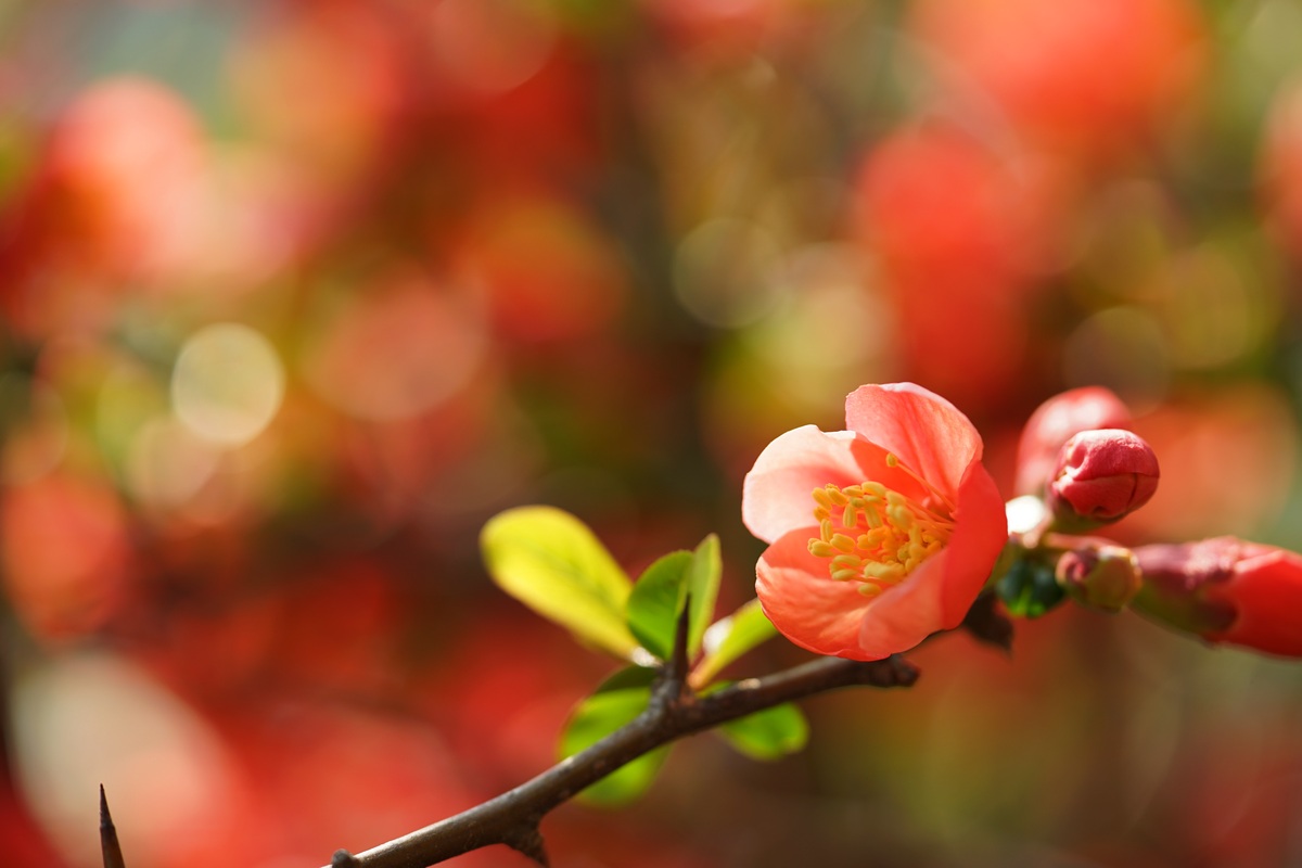 산뜻한 붉은색을 자랑하는 '명자'꽃입니다.