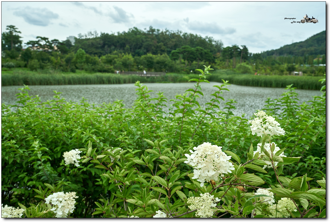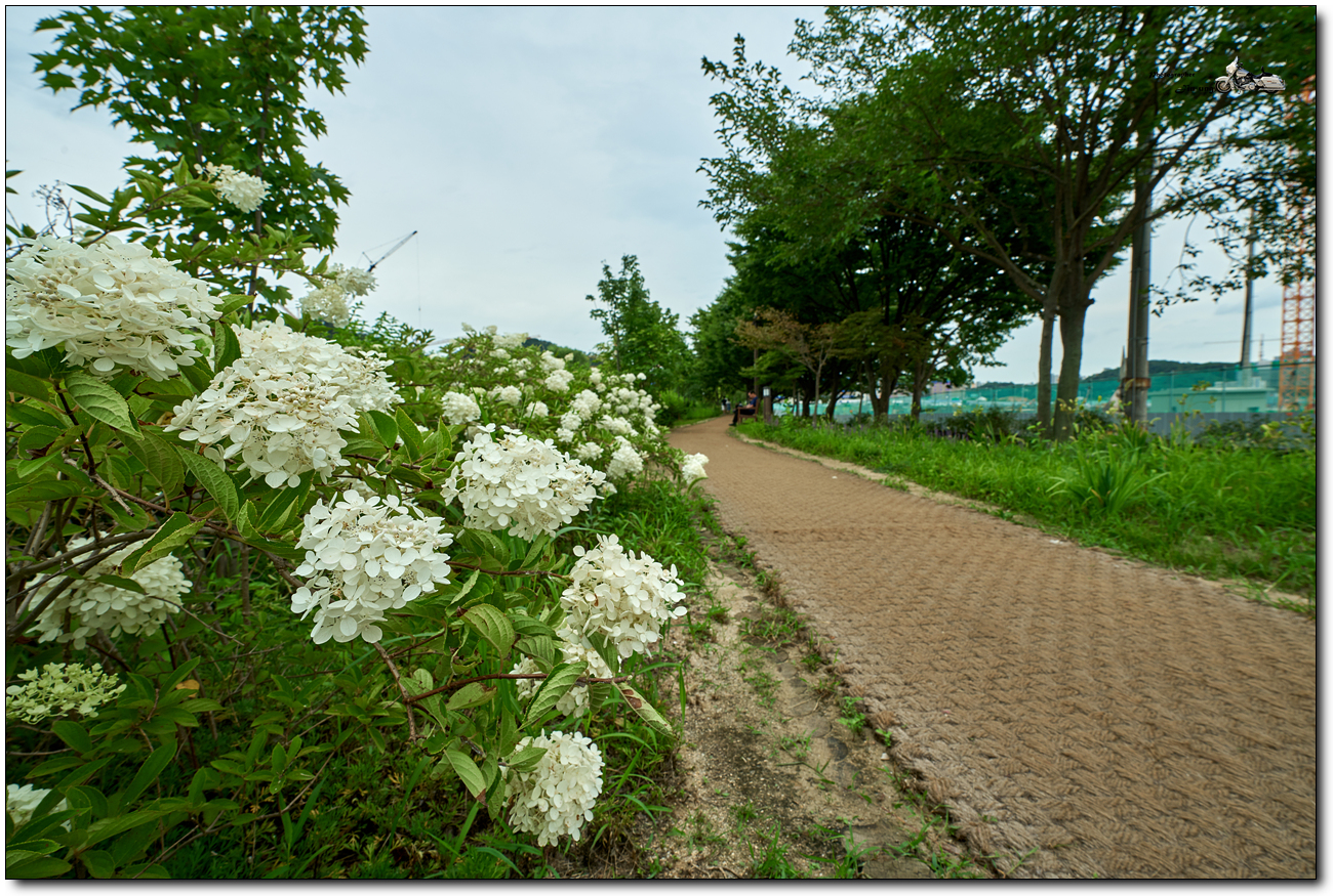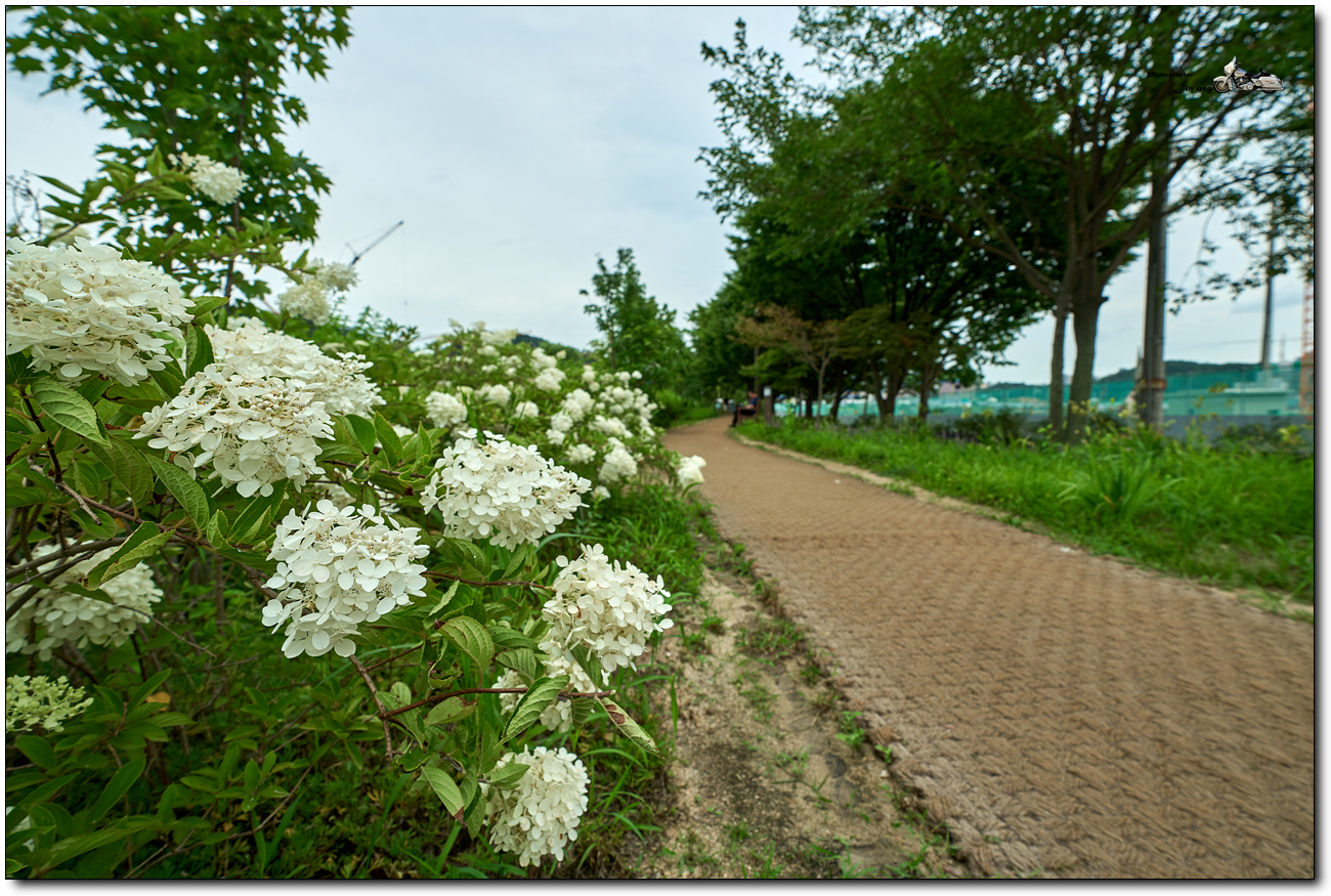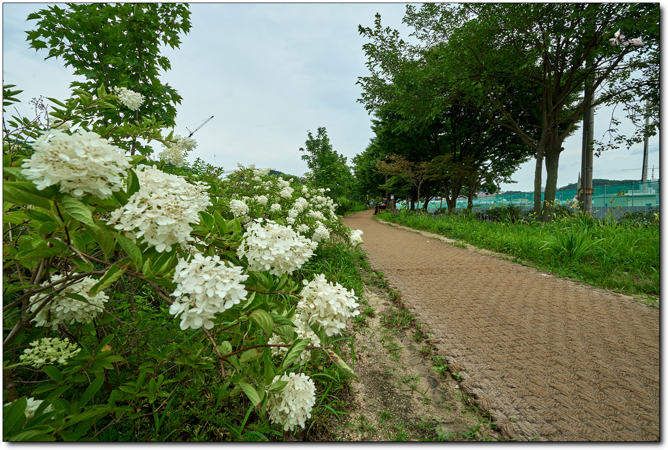초점을 앞에서 두번째 꽃무리들, 중경 정도에 초점을 맞추니 배경이 선명해 졌습니다.