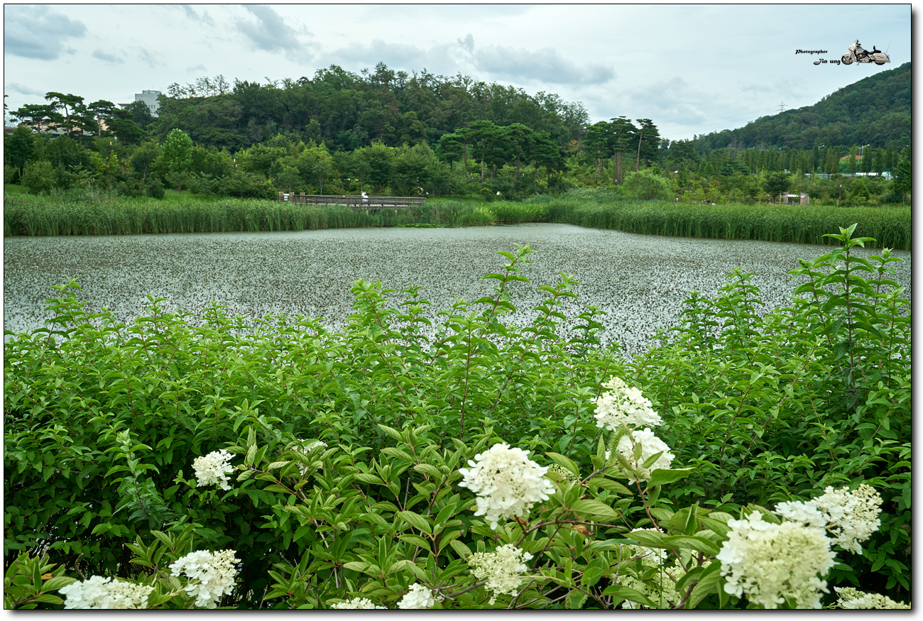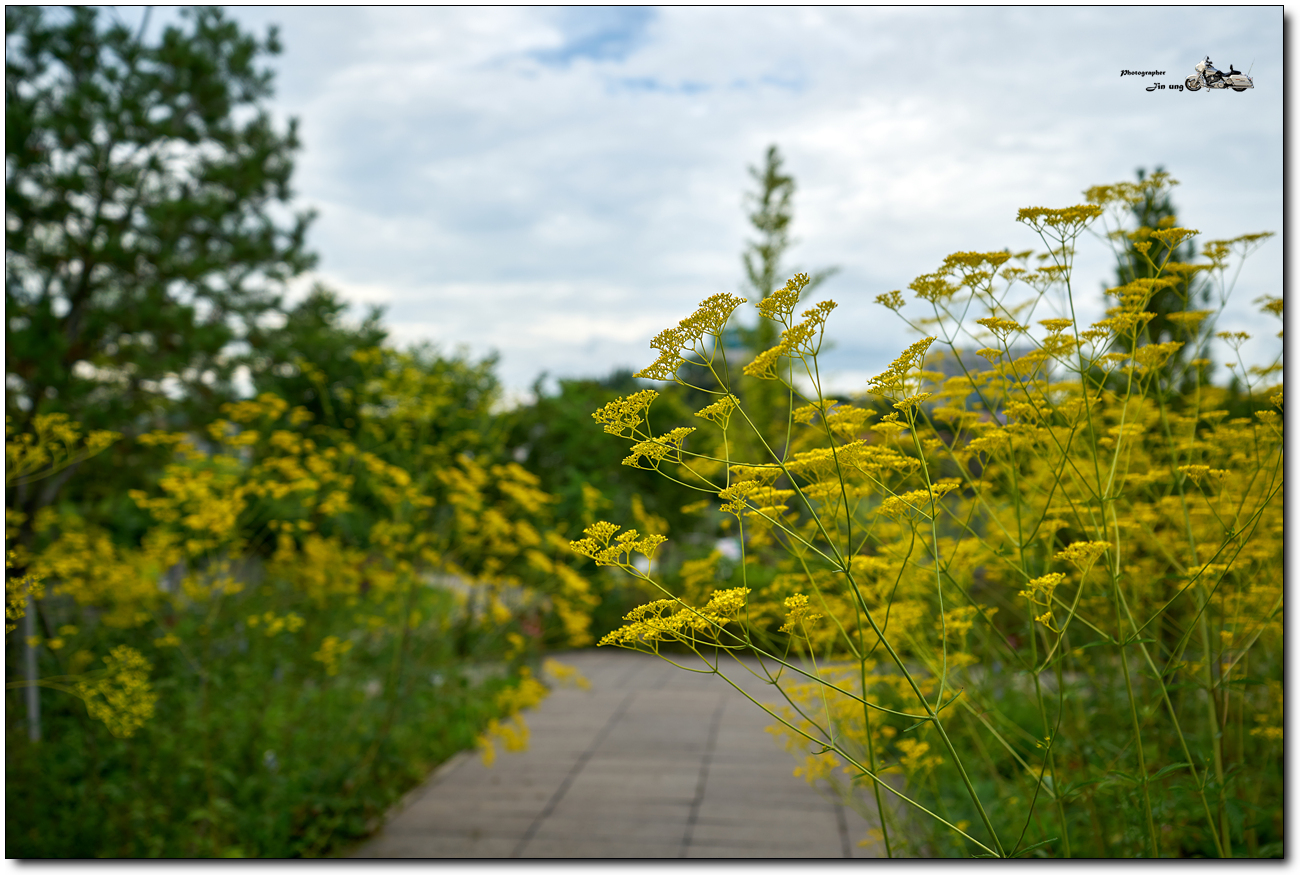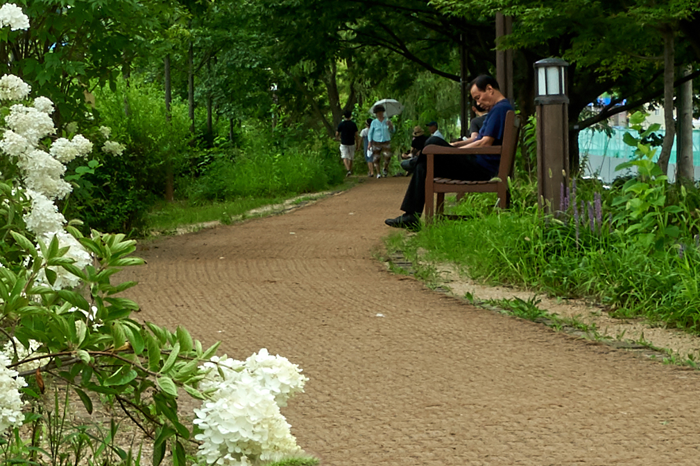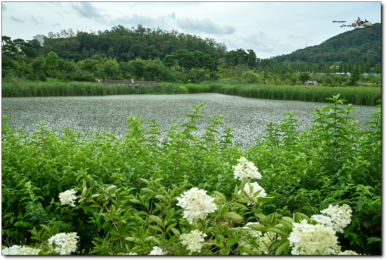 초점을 앞에서 두번째 꽃무리들, 중경 정도에 초점을 맞추니 배경이 선명해 졌습니다.