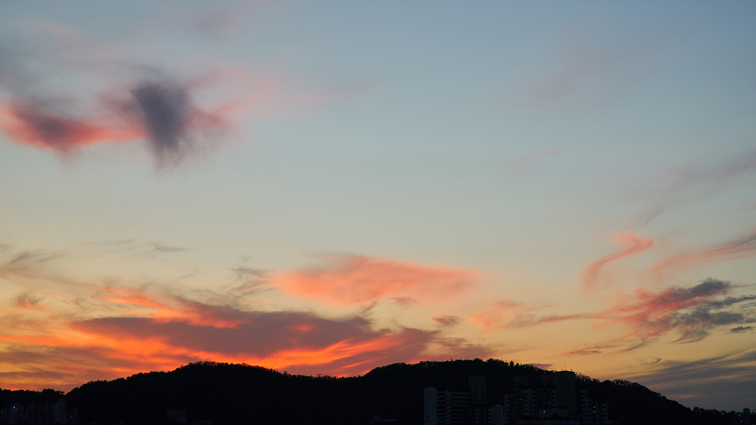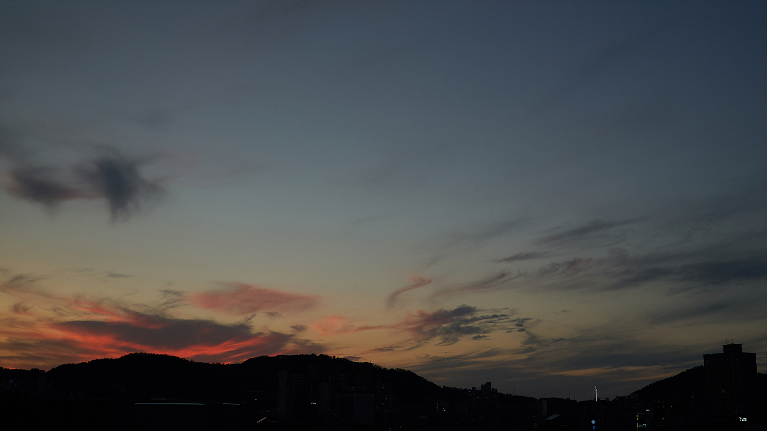 쳐다보고 있습니다. 어제는 조금 아쉽긴 했지만 그래도 그럭저럭 나쁘진 않은 일몰 하늘을 보였던거 같아요