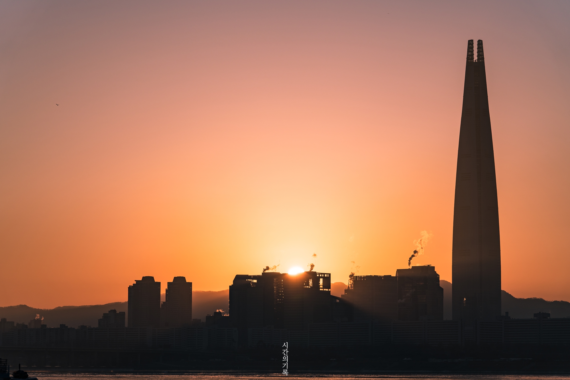 뚝섬유원지 방향에서 봤는데 롯데타워 옆으로 떠오르더군요!