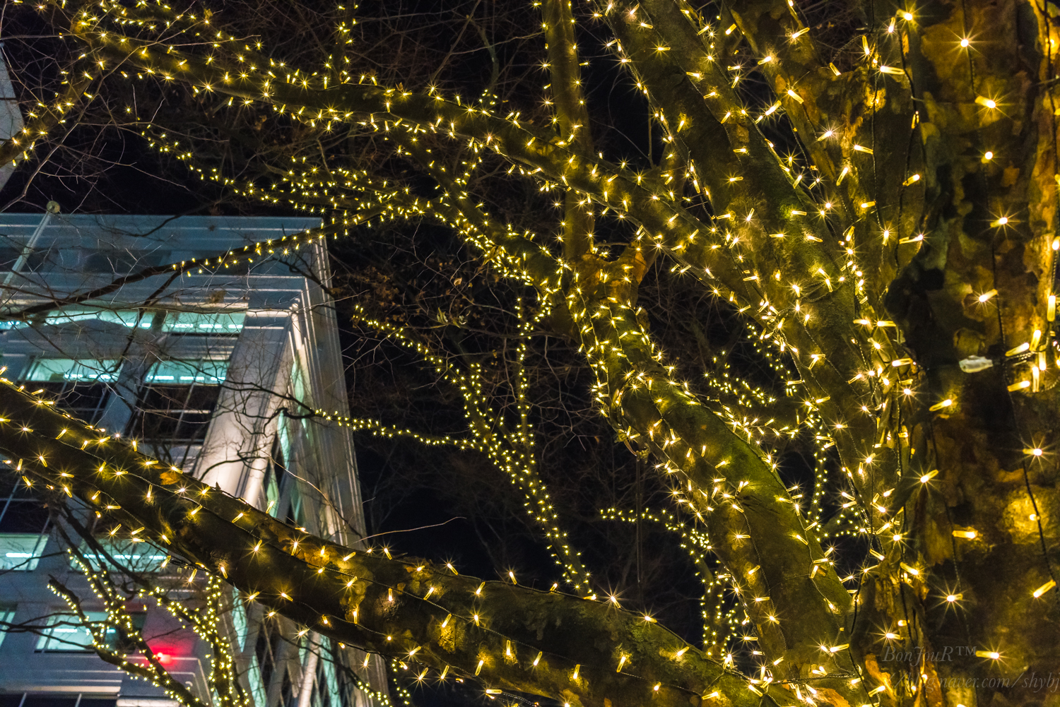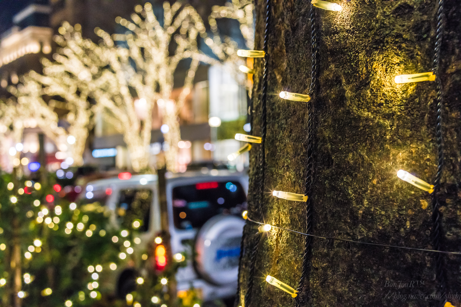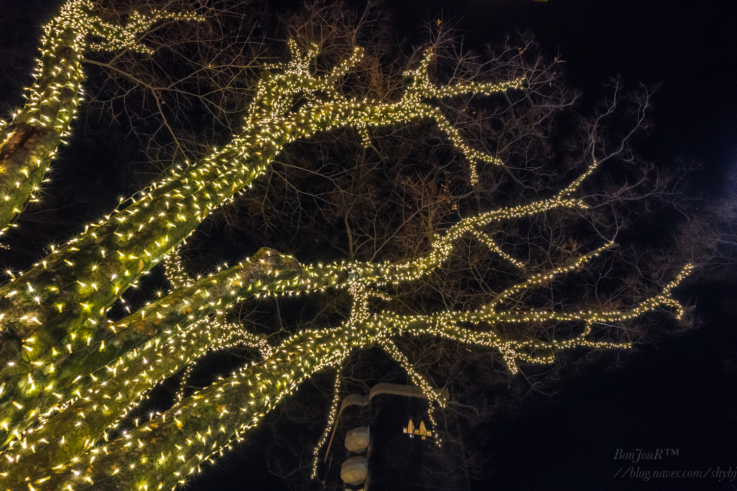 크리스마스 분위기로 나무에도 조명을 많이 달아놨는데,