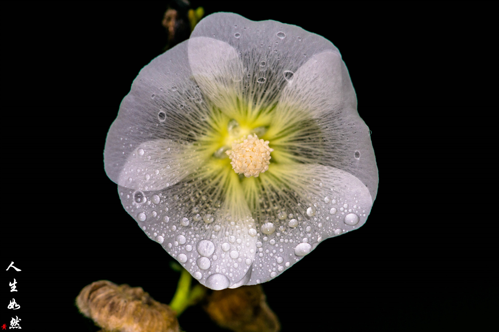 빗방울을 머금은 채..... 홀로 남은 접시꽃 하나.....