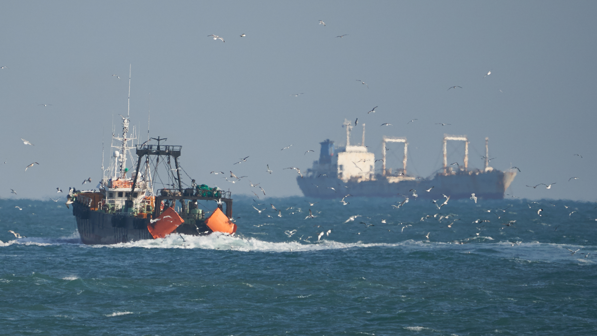 어선한테 관리 받는 갈매기....