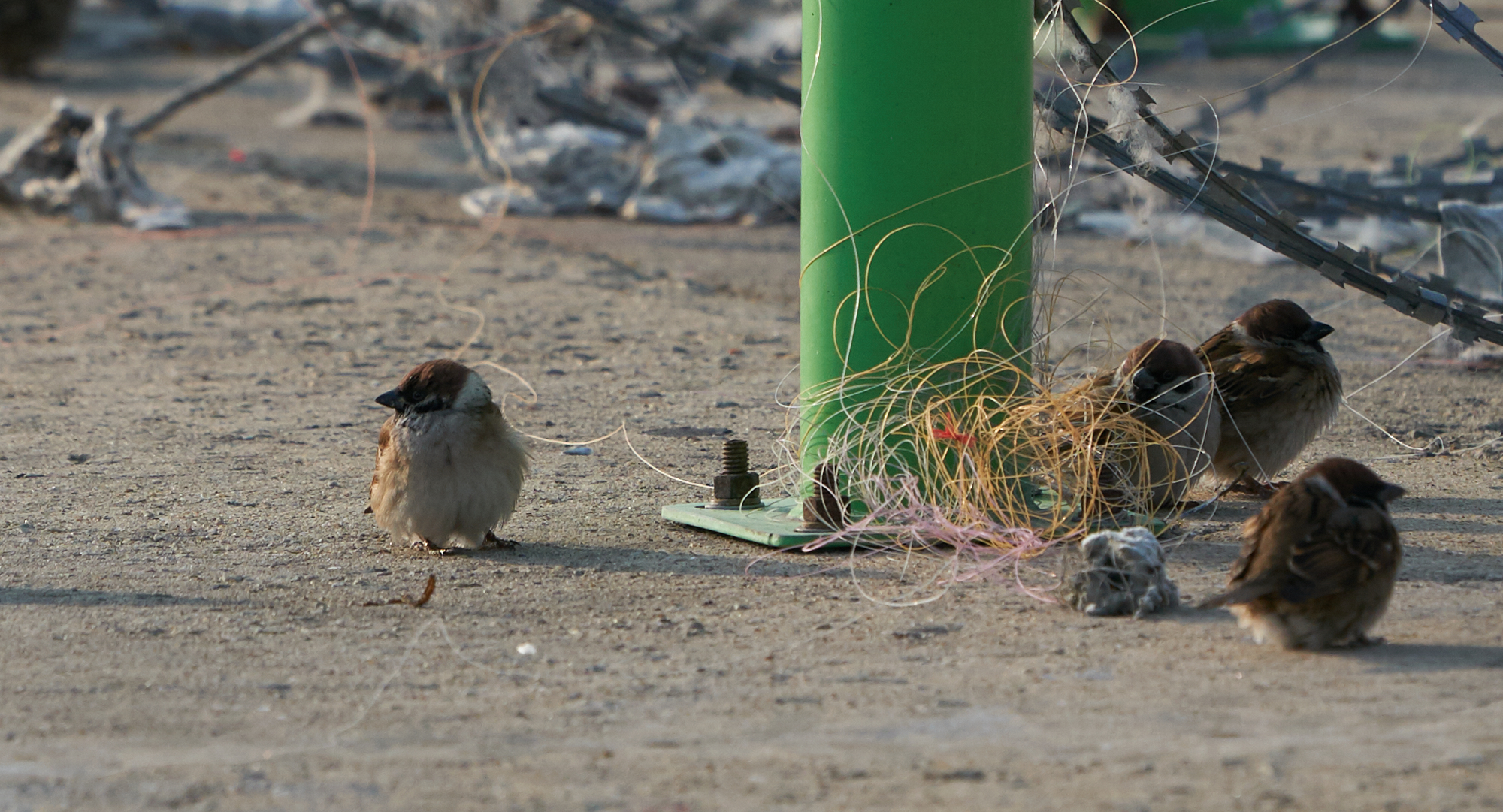 참새가... 여긴 어일 일로... 낚시 줄에 걸릴라 조심하셈