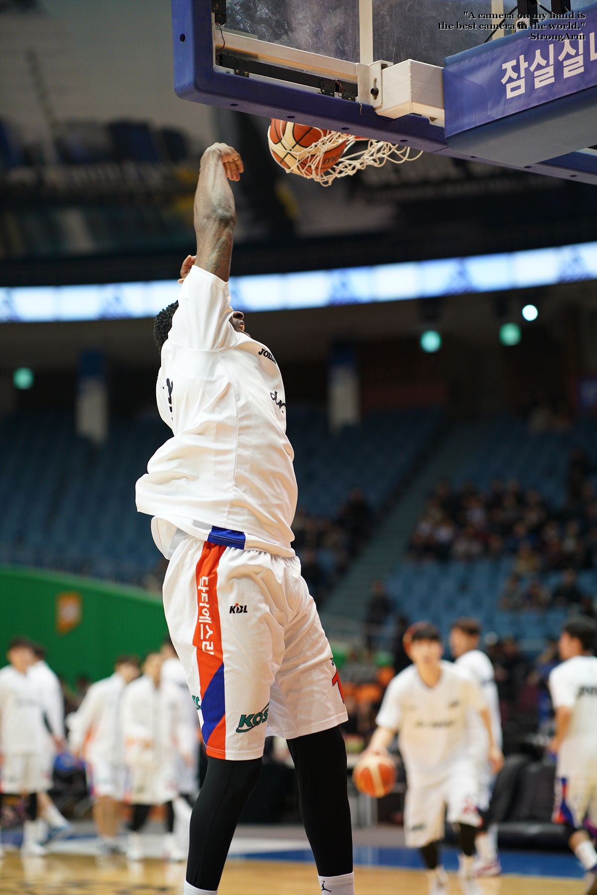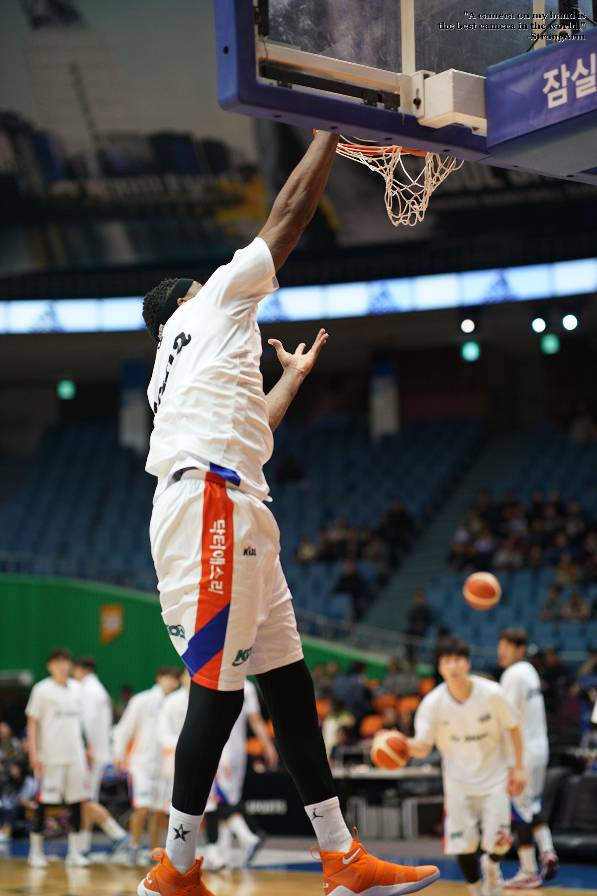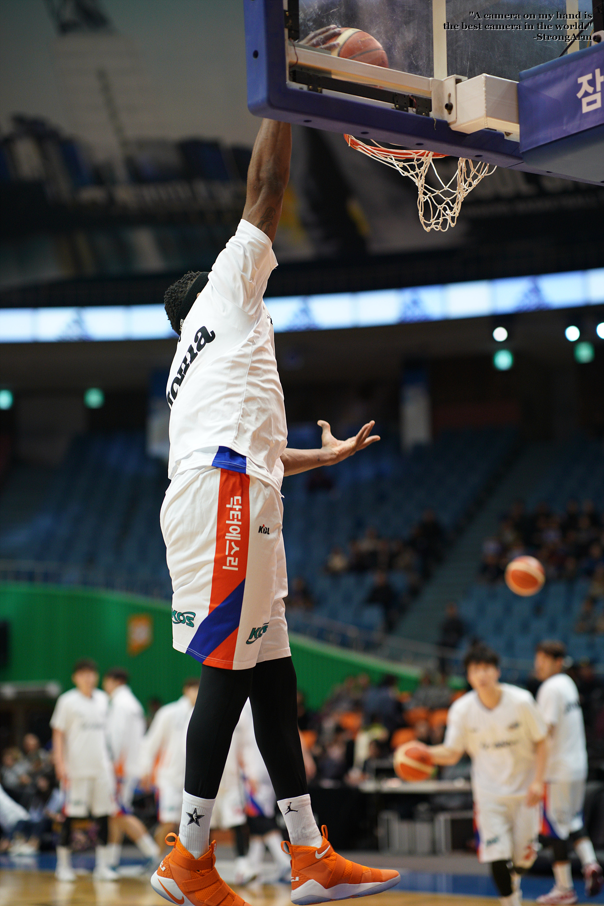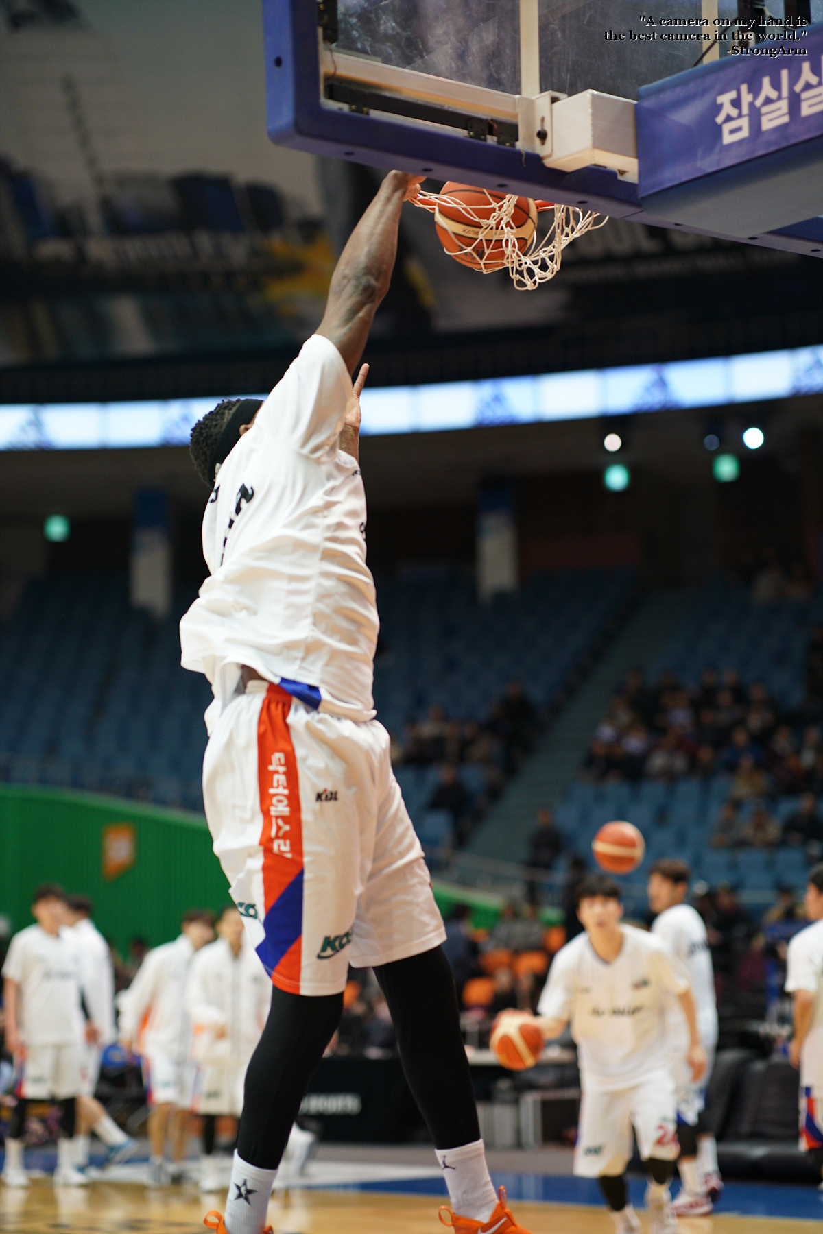 워밍업 타임 때 멋지게 원핸드 덩크슛 하는 모습을 담아봤습니다.