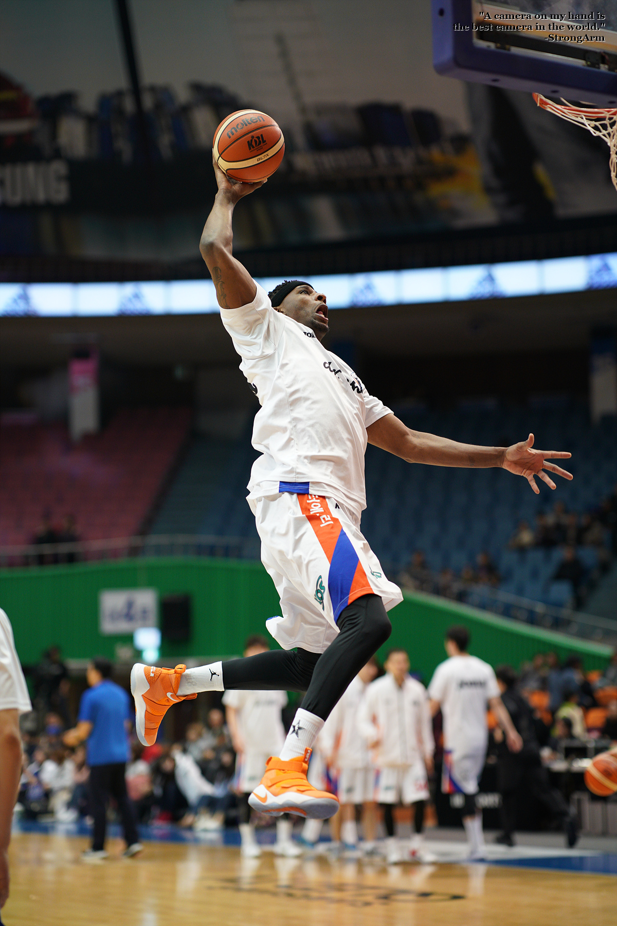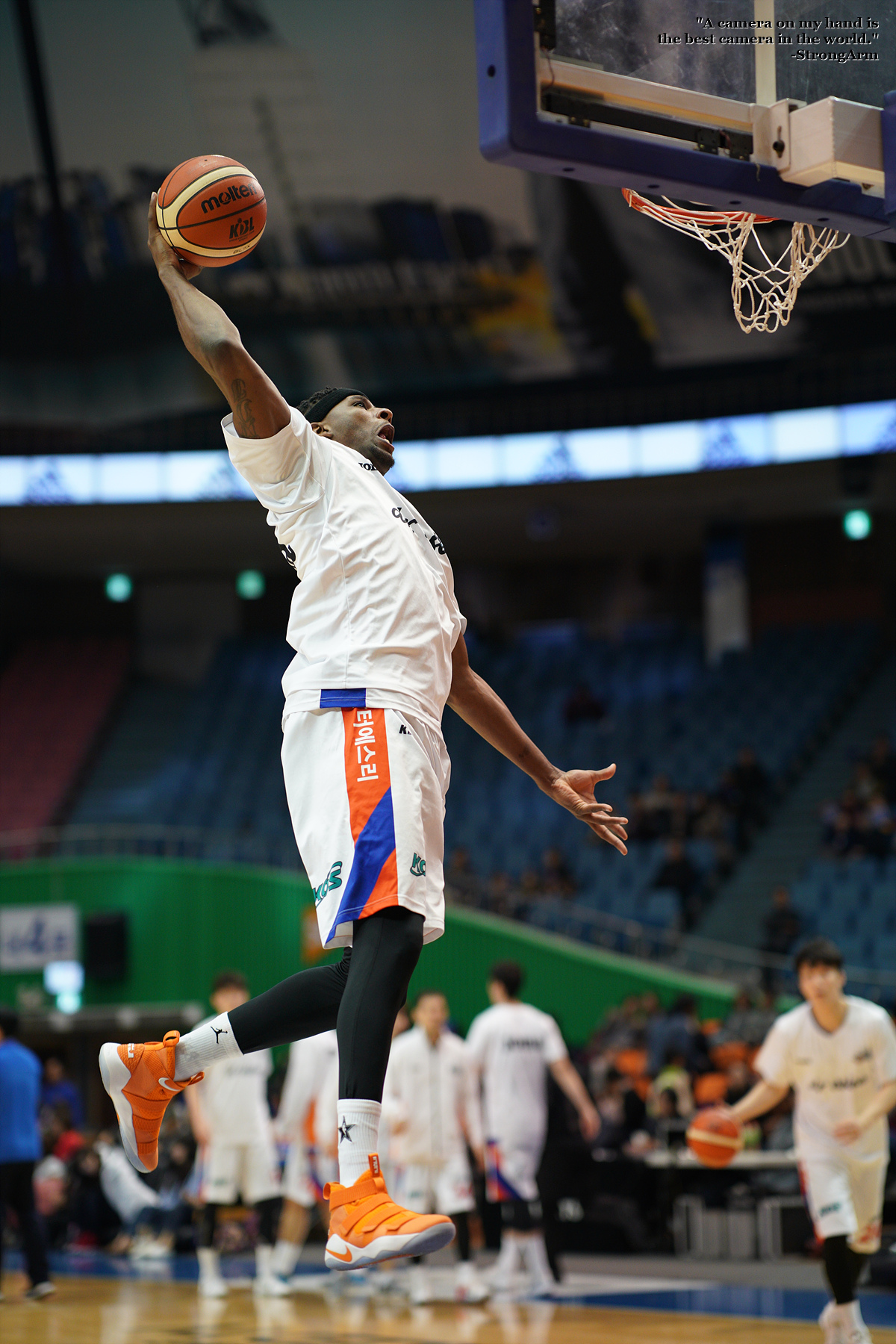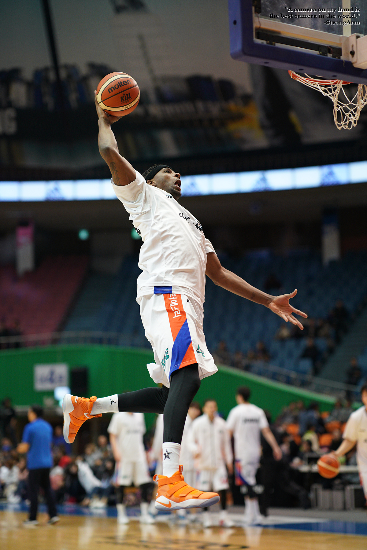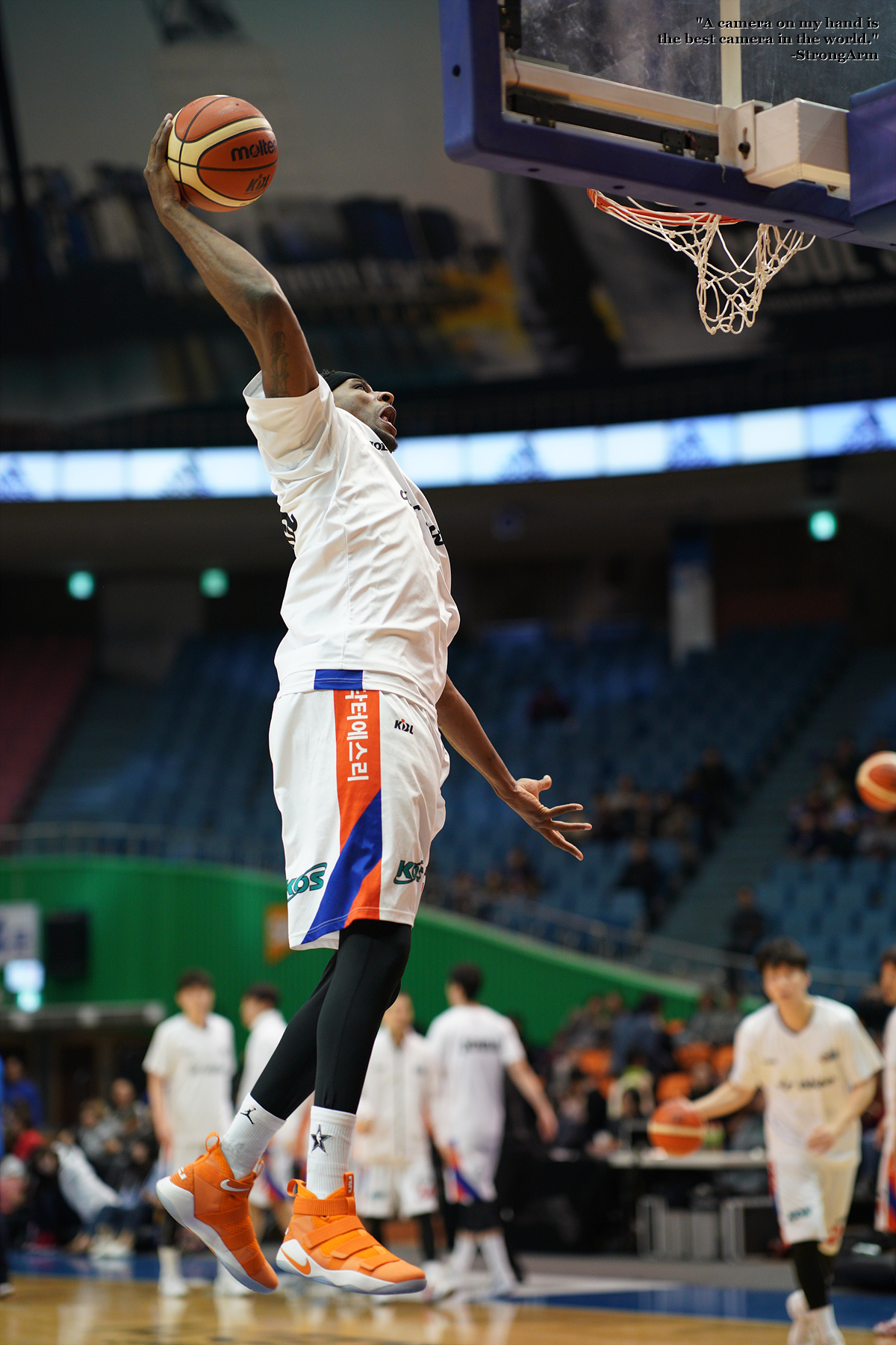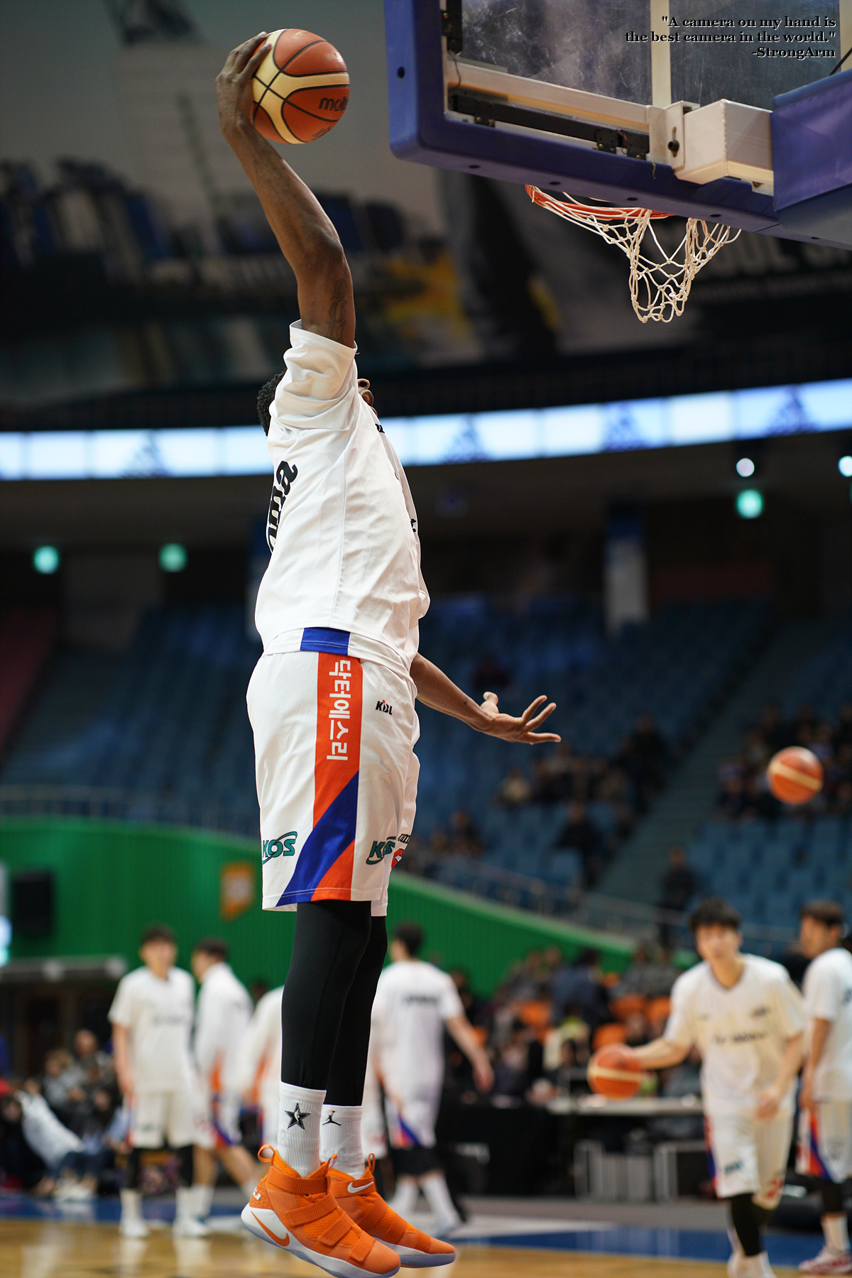 워밍업 타임 때 멋지게 원핸드 덩크슛 하는 모습을 담아봤습니다.