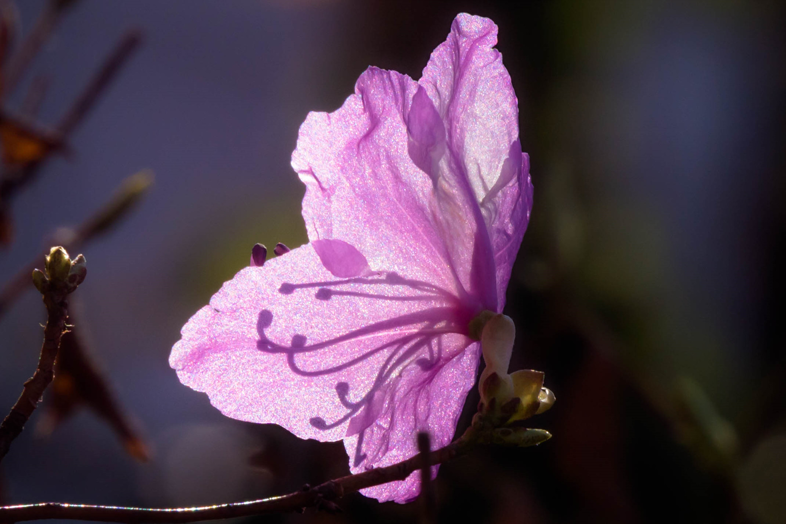 진달래가 수줍게 피어 햇살 닿은 꽃잎에 꽃술의 그림자가 봄을 말해주는 듯 합니다