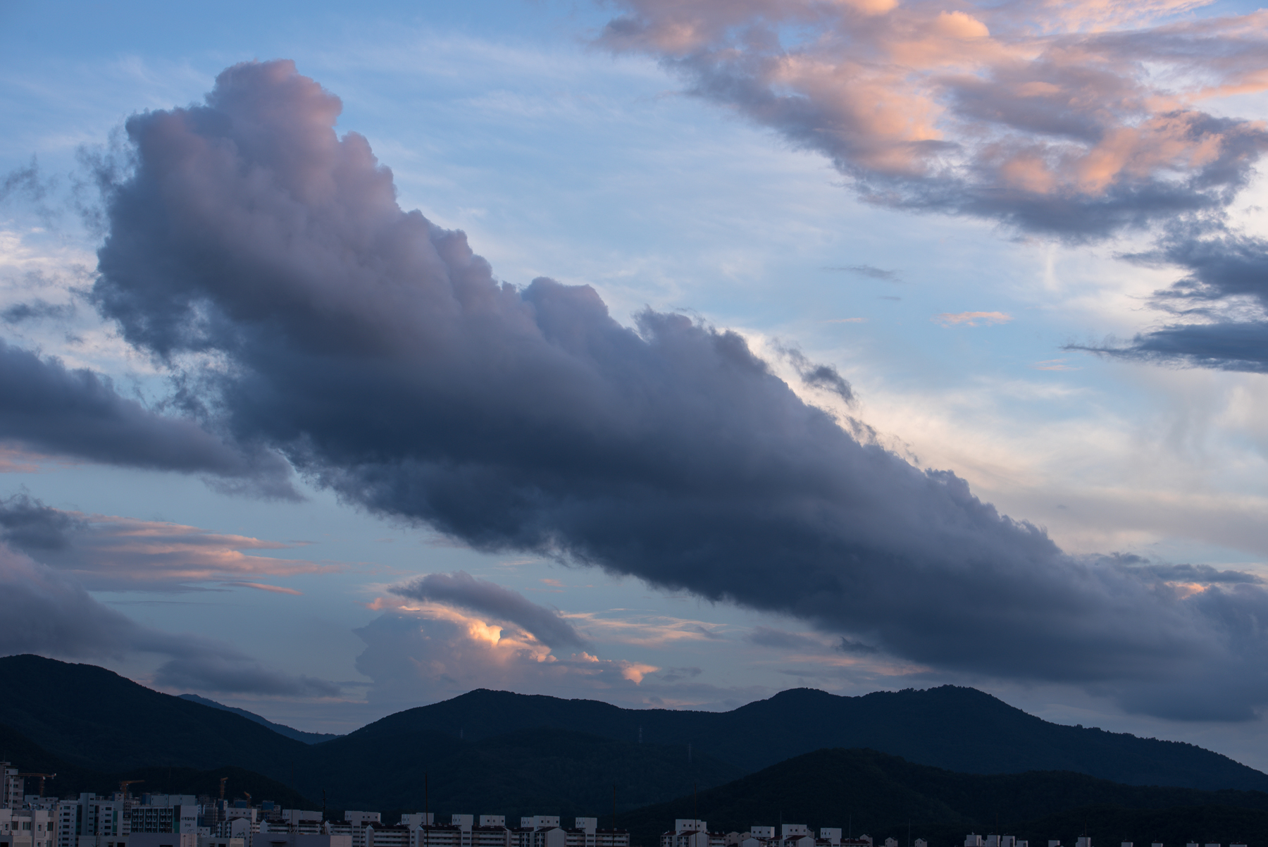 예사롭지 않게 붉게 물든 구름들이 보이더라구요