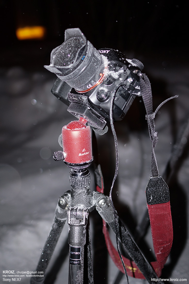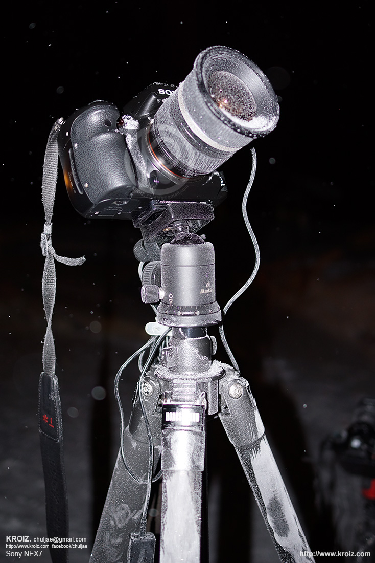 오로라 찍니라 얼어버린 카메라들.. @_@