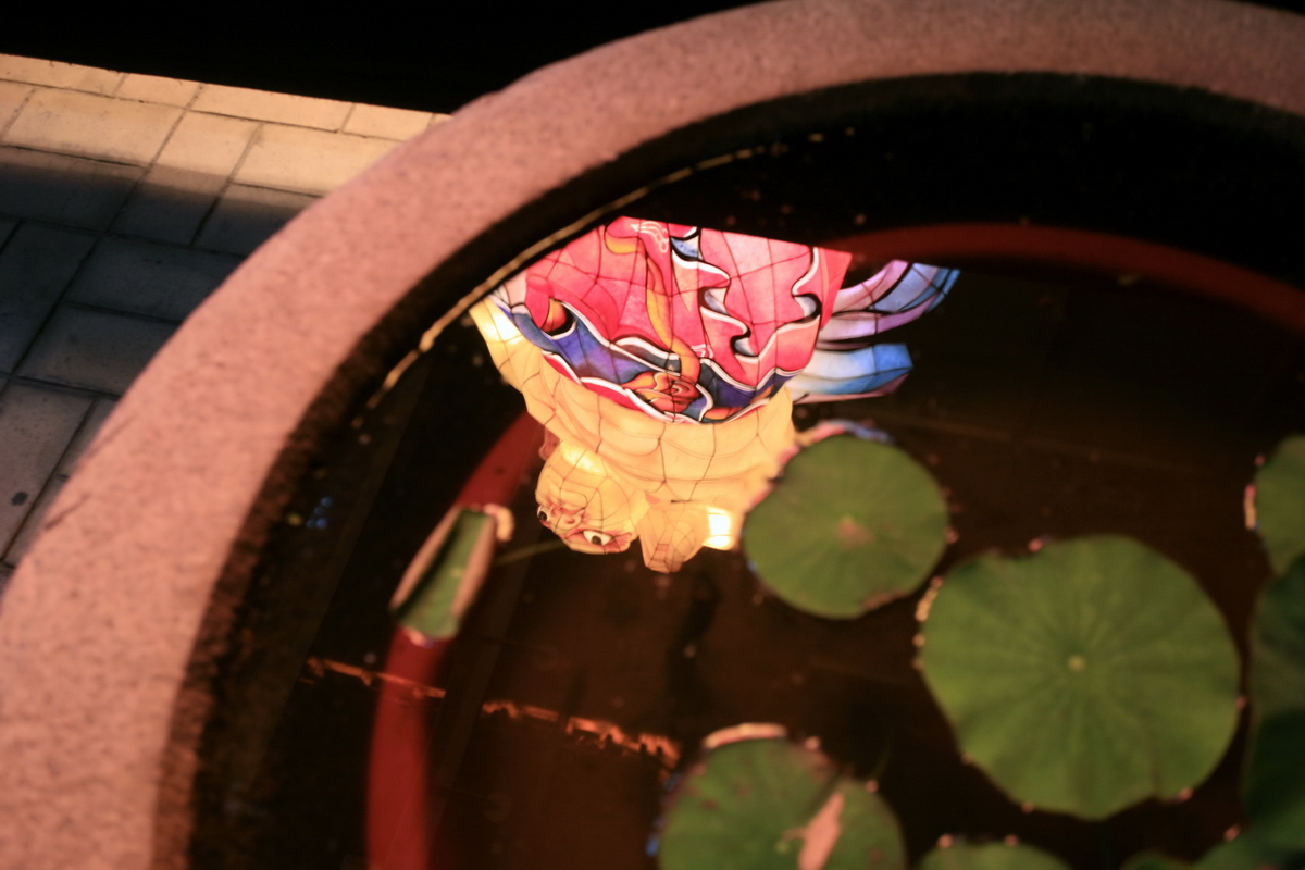 연잎 과 어울리는 사천왕 등 반영