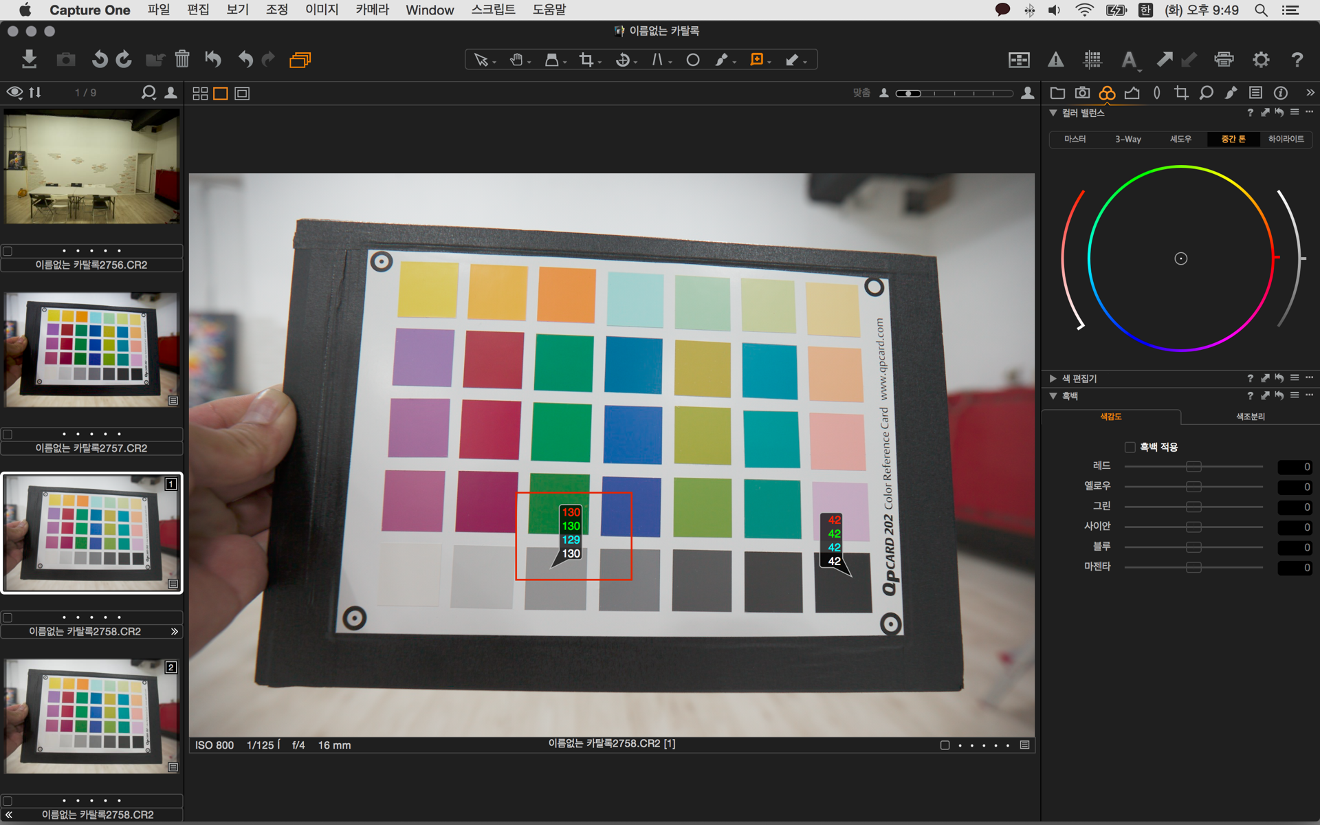 이렇게 화이트 벨런스를 잡은 데이터를 같은 환경에서