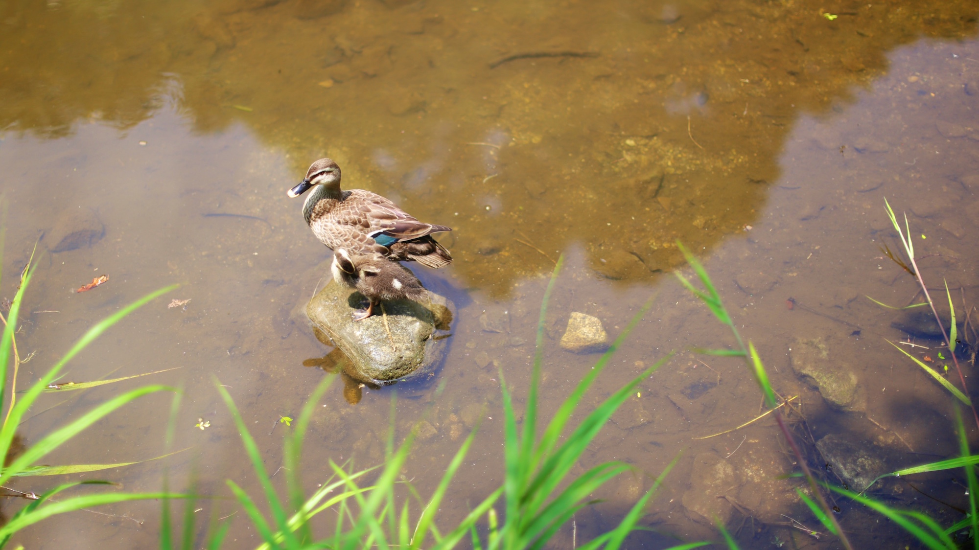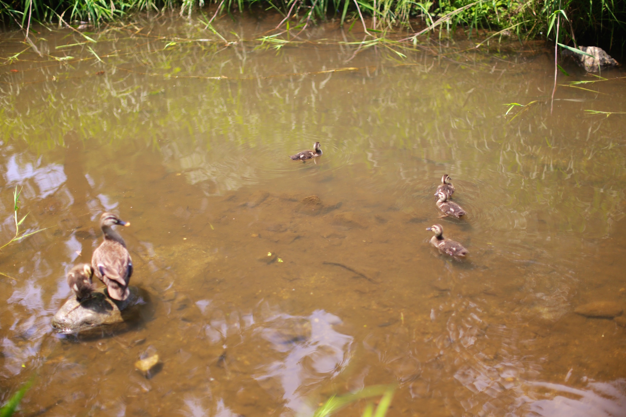 오리 가족의 나들이를 조용히 지켜 보았습니다.
