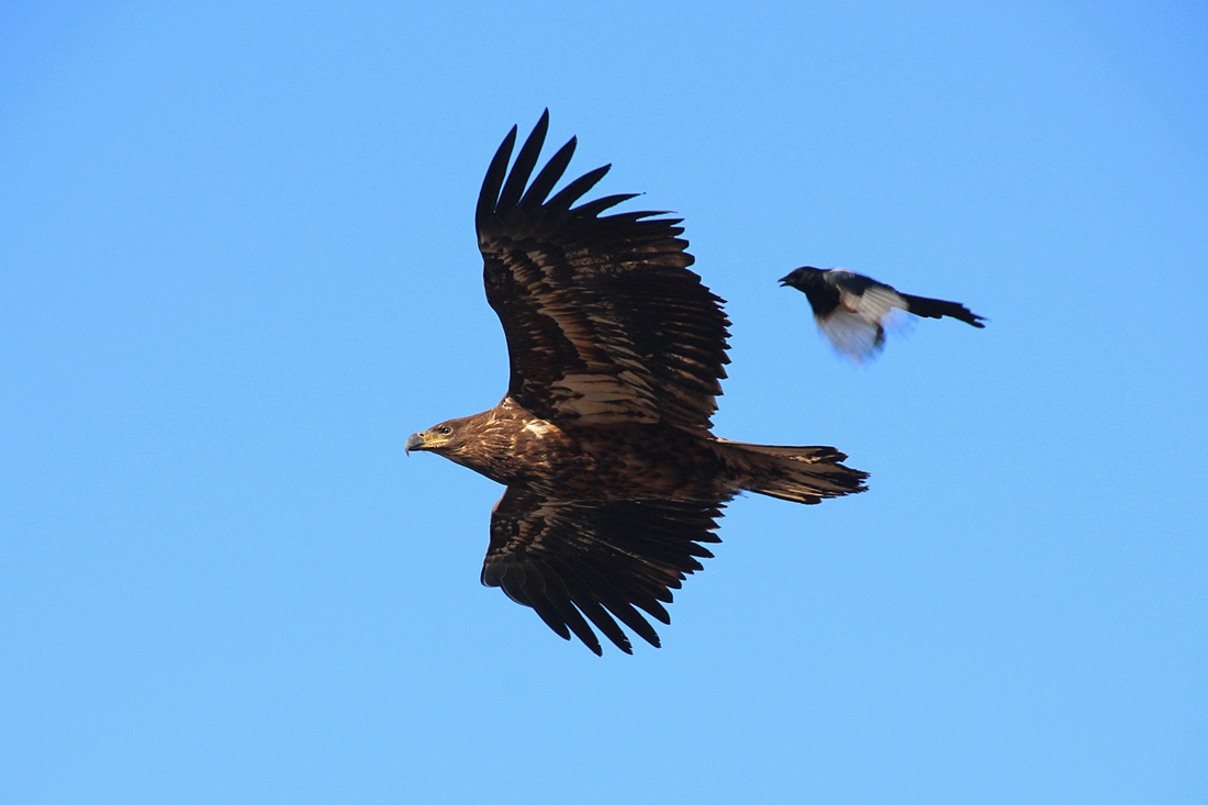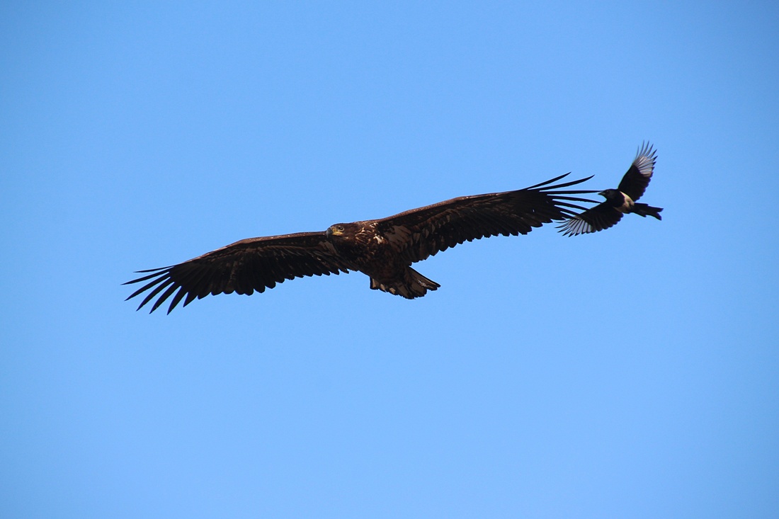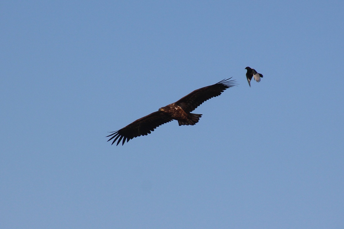 까치에 쫒기는 독수리의 모습이 안스럽습니다
