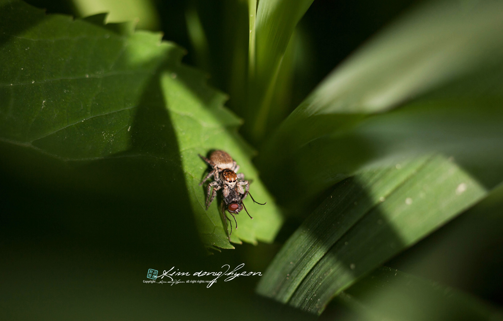 새로운 깡충거미가 놀고 있네요...