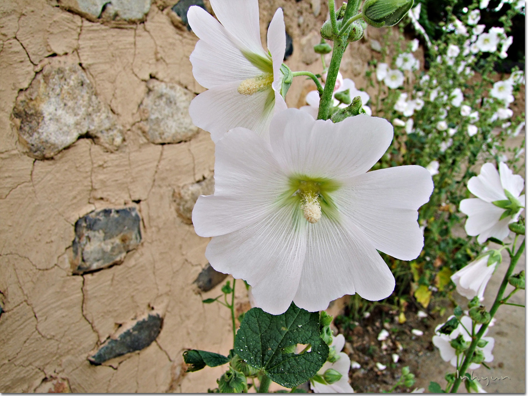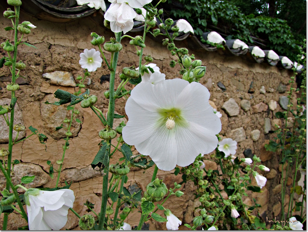 남평문씨세거지에 갔을때 흰색접시꽃을 보았어요.