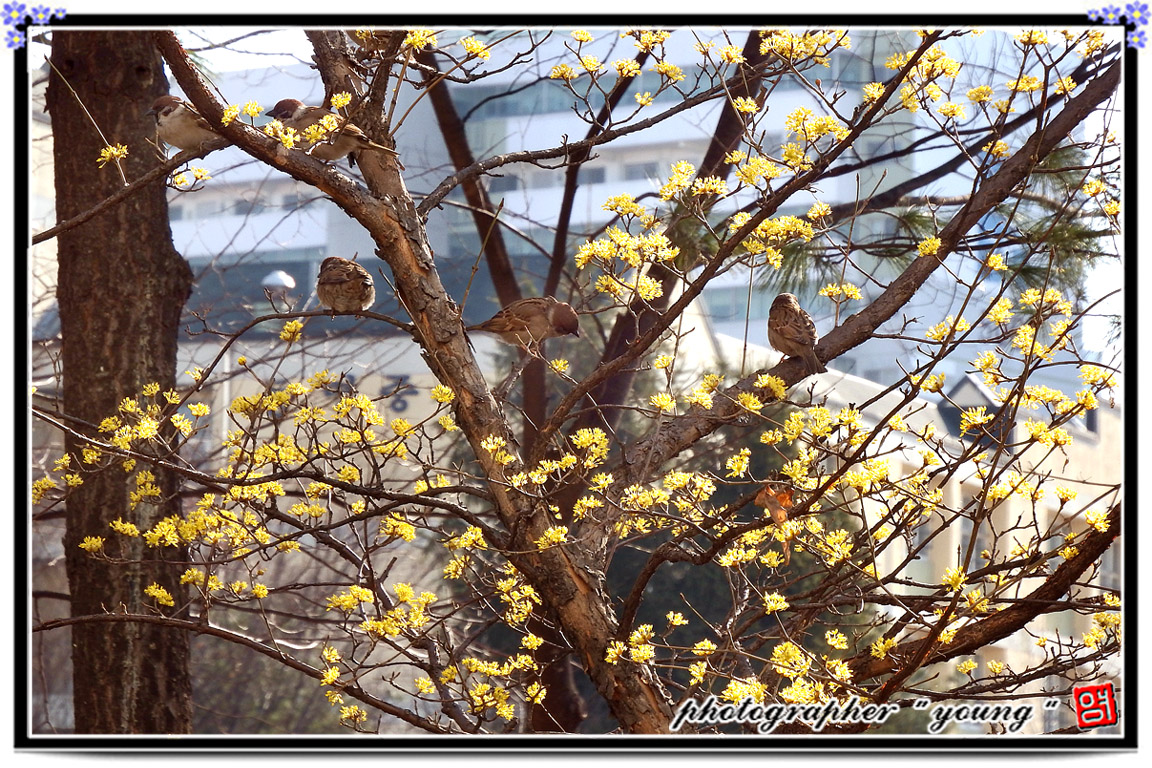 샛노란 산수유 꽃 활짝