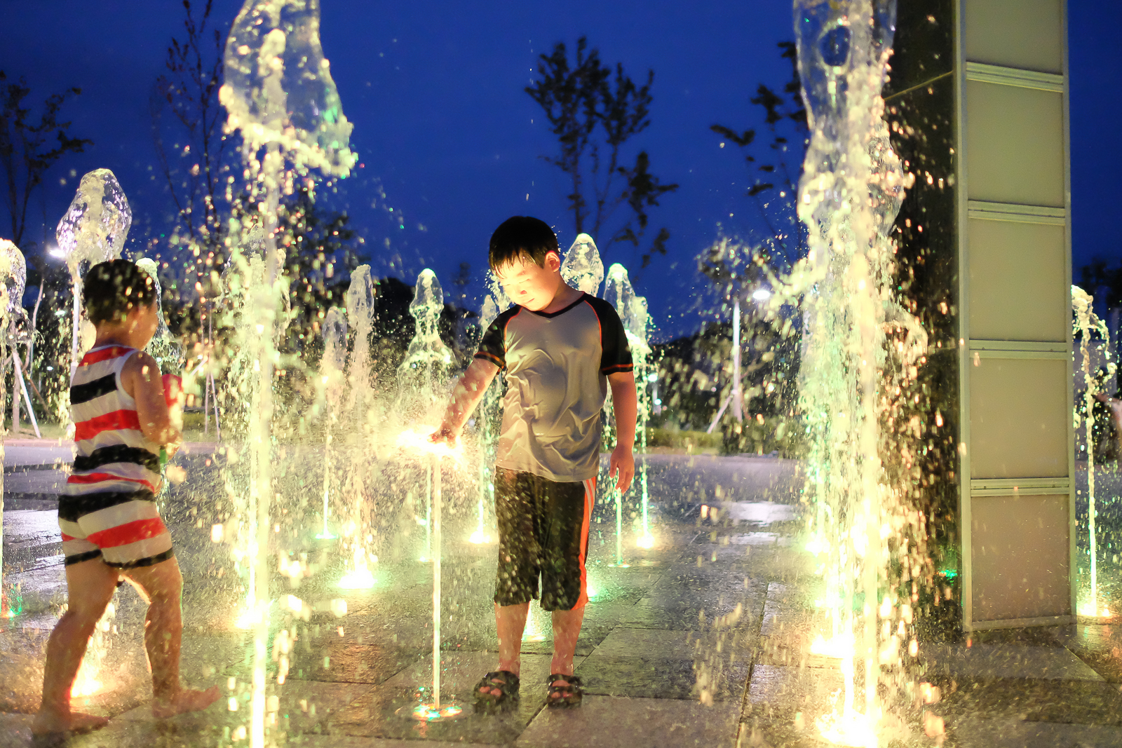 밤에 또,,, 근처 분수대