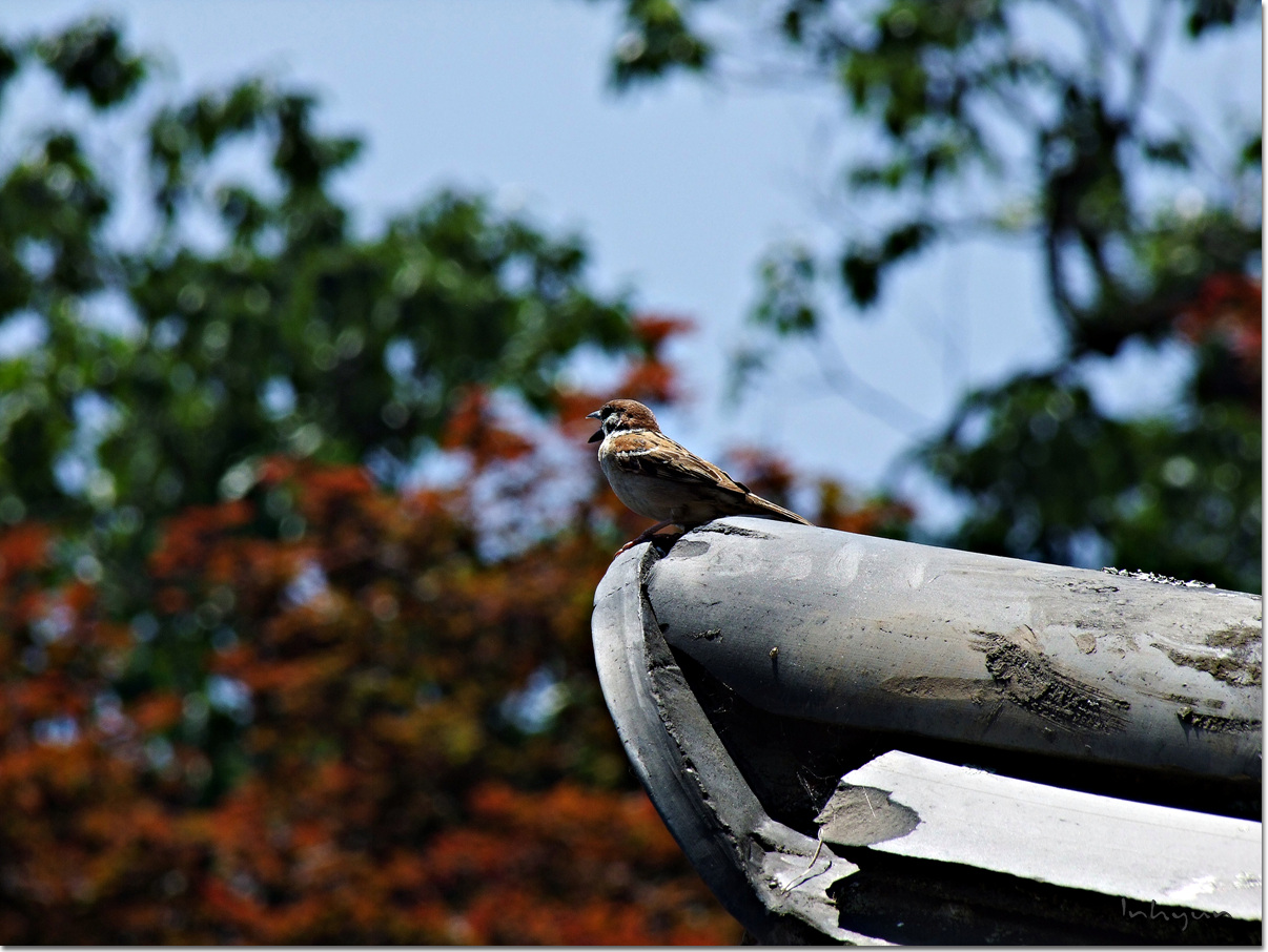 찍는 순간 참새가 입을 쫘악 벌리고 하품을 합니다...^^