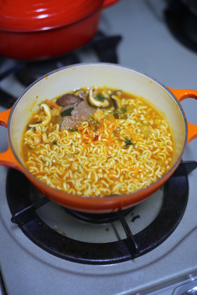 그런데 서더리탕을 어찌할까 고민하다가 육수만 내고 그 육수에 라면을 넣어 일명 서더리 라면을 만들었더니 정말 기가 막히네요..