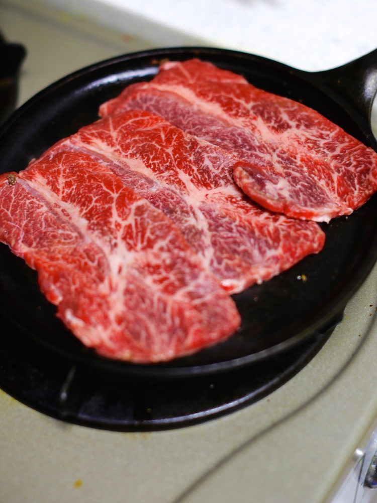 너무 바다 고기만 있으면 식탁이 서운할까봐 한우도 조금 사서 구워 진수성찬이 되었습니다.