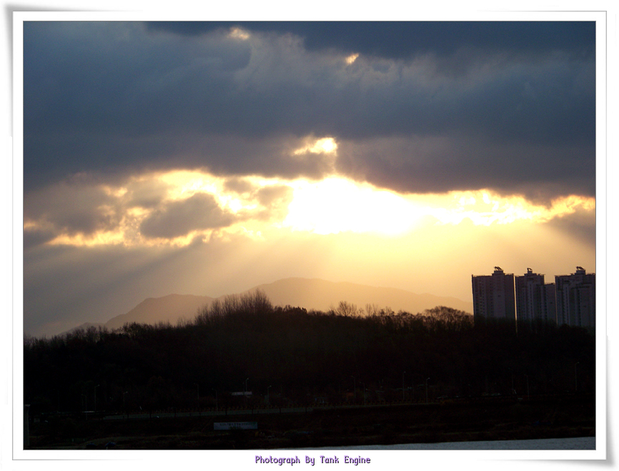 고속도로를 타고 지나던중 여러 모양의 빛내림을 찍게되었습니다.
