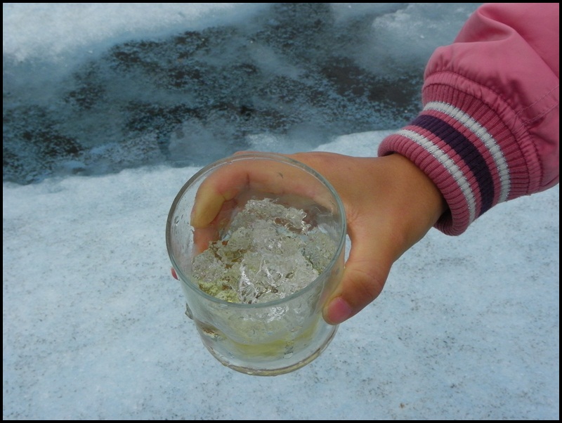 물론 추위에 떨긴 했지만요...^^ 마지막 투어가 끝날 때 쯤에 빙하의 얼음을 깨서 위스키를 한잔 줍니다..^^
