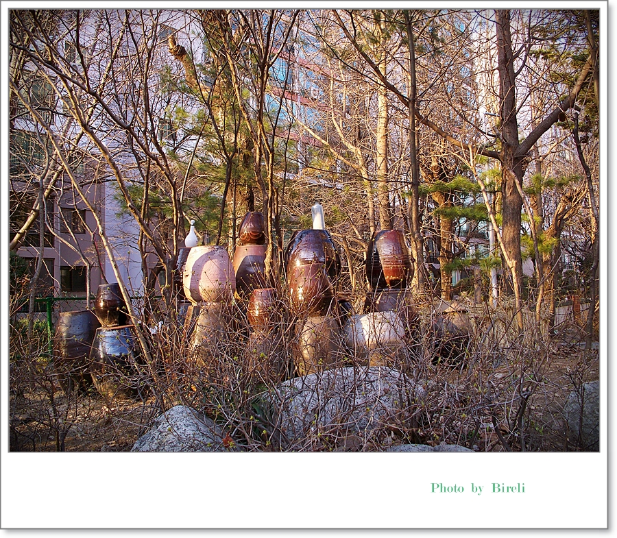 아파트 초입의 작은 광장 화단에 저런 항아리들이 쌓여 있습니다. 누가 왜 갖다 놓은 것인지 모르겠지만 저녁 햇빛이 괜찮아 보여 찍었습니다. 햇빛은 잘 표현이 안 됐군요...