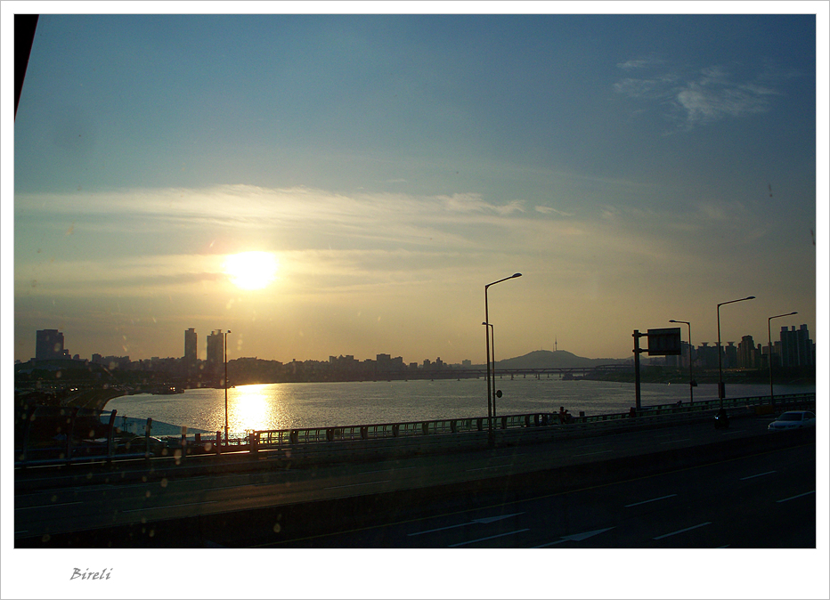 잠실대교에 붙어 있는 전망대 안에서 찍었습니다.