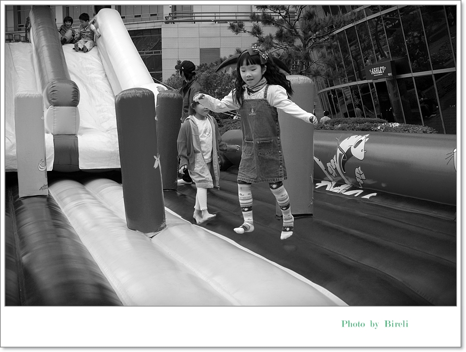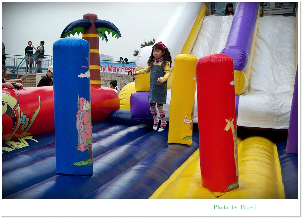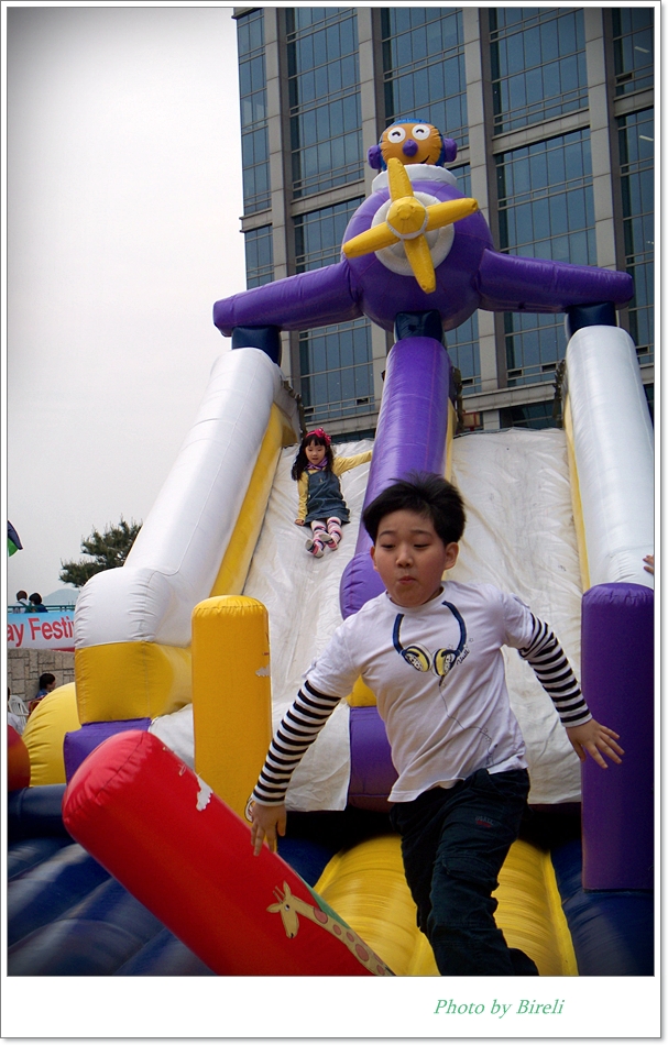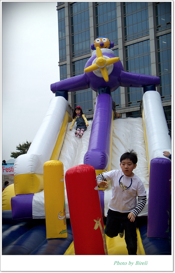 현명한 선택이었다는 생각이 들었습니다. 놀이기구라고 해야 저 에어바운스와 꼬마 기차밖에 없었지만 아이들은 저것만으로도 아주 좋아하더군요. 게다가 생각보다 사람이 많지 않아서 아이들이 몇 번이고 이용할 수 있었습니다. 에어바운스의 관리자분은 아주 엄격해서 초등학교 아이들이 새치기를 하자 불러서 따끔하게 야단을 치더군요.