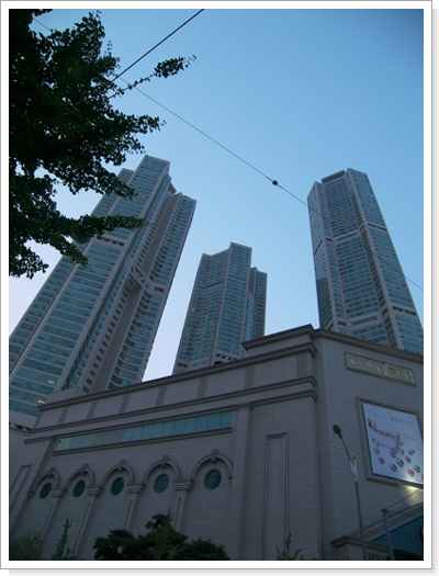 윗 사진은 H모 백화점 아래 사진은 하이페리온 입니다~ 하이페리온~ H모 백화점도 있고 극장도 있고 위에는 다 아파트입니다~ 높이는 3개동 가운데 1개동은 대한생명사옥(63빌딩)보다 높다지요~