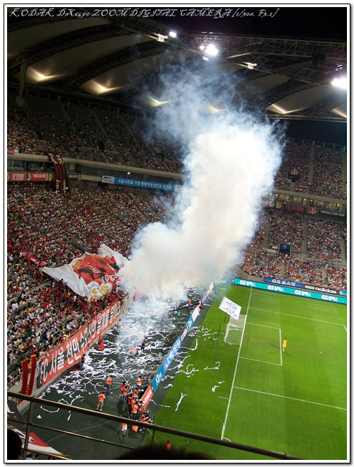 FC 서울 서포터즈의 응원 현장입니다.