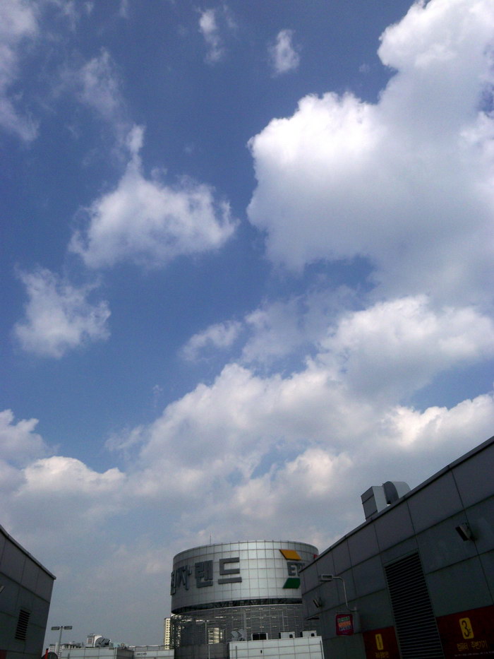 여름을 전 무지무지무지무지 싫어합니다.제 신체 하드웨어 구조상 추위엔 나름 강하지만 더위엔 맥없이 약해서(3월중순부터 이미 제 방엔 에어컨이 가동중...)... 그래서 로또가 된다면 저 시원한 캐나다 중부 어딘가로 이민을~~~~~음, 그래도 여름에서 단 한가지 좋아하는점이 있다면 풍성한 구름~납작하게 3D게임 하늘 매핑처럼 발라지는(?)구름이 아닌 풍성한 뭉게구름이 피어나는건 좋아합니다~