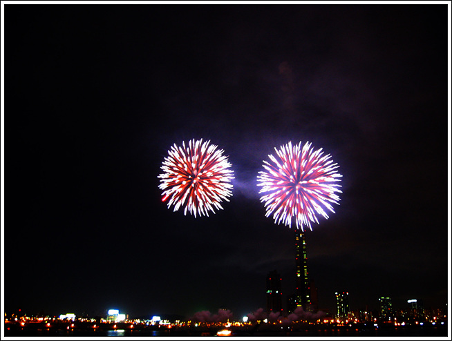 이것도 2003년도에 찍은 거네요. 그러고 보니, 전, 2003년도에 사진 찍으러 여기 저기 많이 다닌 것 같습니다.하긴, 그 때는 결혼전이였으니까요.2003년도에 세계불꽃축제때, 찍은 사진입니다.셔터 스피드 때문에 찍은 사진 보면 화약 연기가 좀 보여서 포토샵으로 약간의 커브를 줬던 걸로 기억합니다. 원본 사진이 사라져 버렸서 원본으로 못 올립니다.