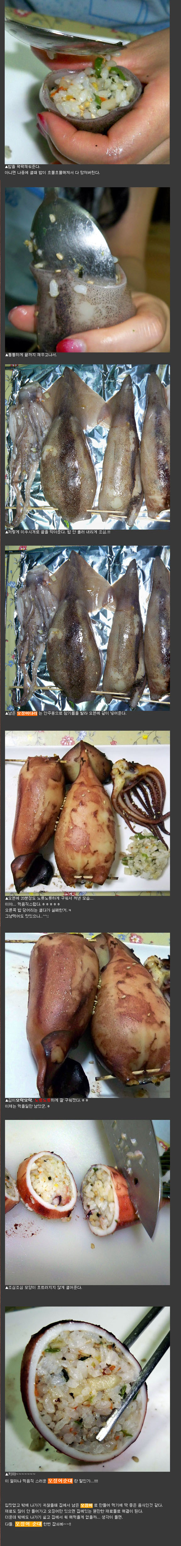 집에서 해먹는 오징어순대레시피 처럼 작성해 봤습니다.오징어순대 제작자 : 여친사마.