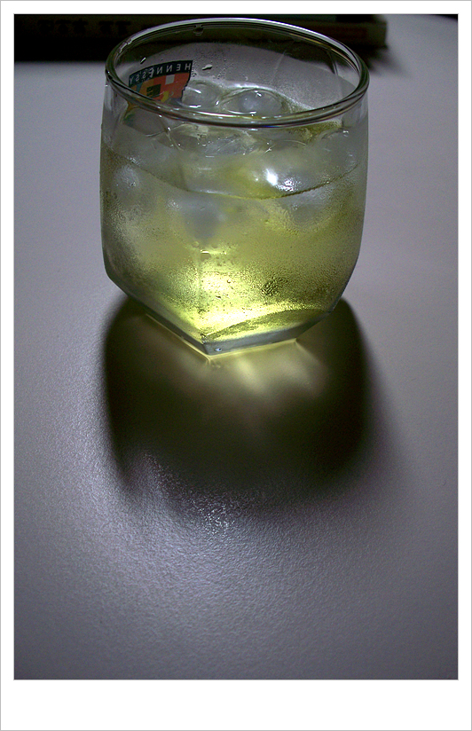 오늘도 밤을 새워야 하기 때문에 이렇게 김릿과 진토닉의 중간 정도 되는 막칵테일을 만들어 마시네요. 궁금하신 분들을 위해 맛에 대해 설명한다면, 가난한 자의 술인 진의 알싸하고 종잇장 씹는 듯한 맛과 라임주스의 강한 톡 쏘는 신맛, 토닉워터의 시큼하면서 시원한 맛이 기묘한 조화를 이룹니다.
