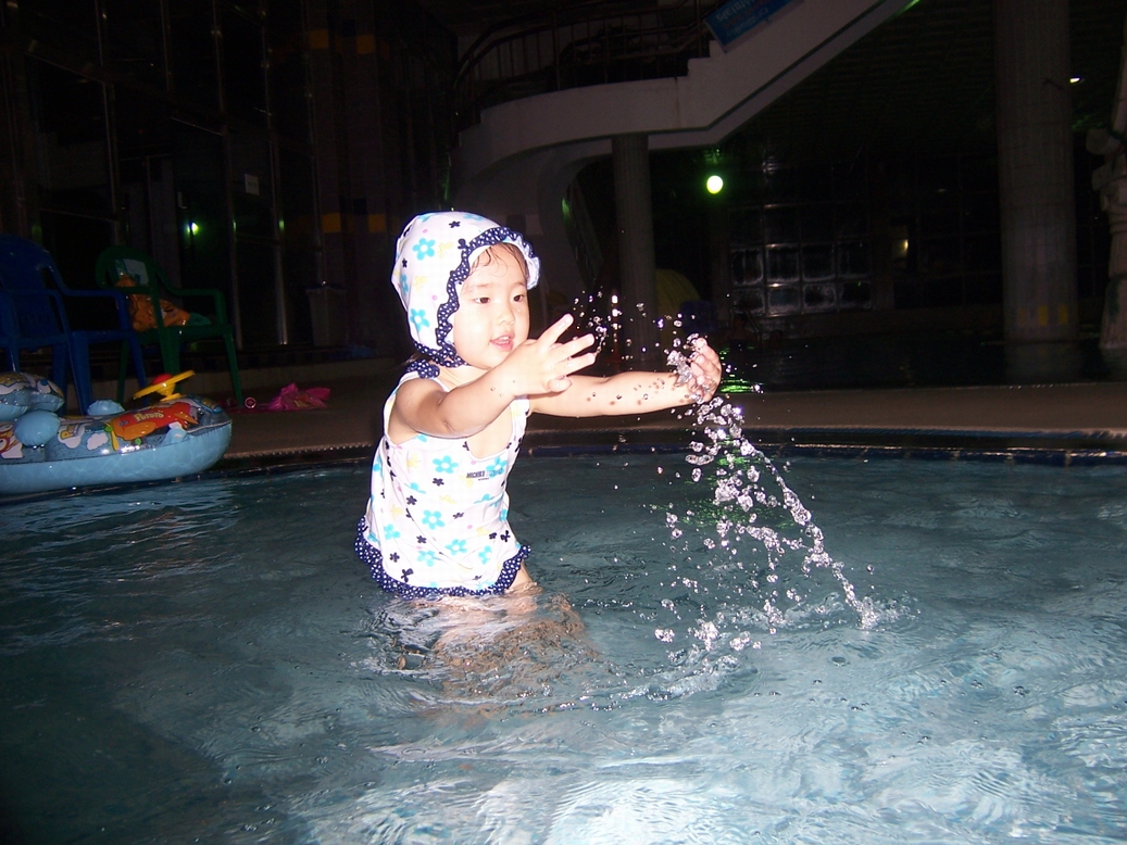 수영하고 디보 광고판에서 한 컷 그리고 수영장에서 노는 모습입니다.