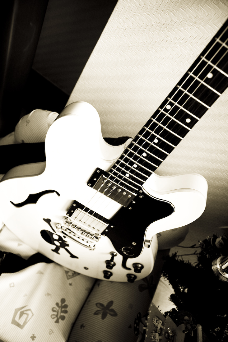할로바디 기타는 한 번 만져 보면 그 매력을 잊을 수가 없습니다. 메탈 하는 사람들은 별 매력을 못 느끼겠지만. 부드럽고 두툼한 소리, 길디 긴 서스틴, 통기타를 치는 듯한 손맛.... 세미할로는 좀 덜하지만 그래도 솔리드바디와는 확실히 다르죠.