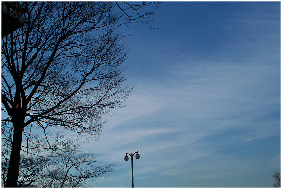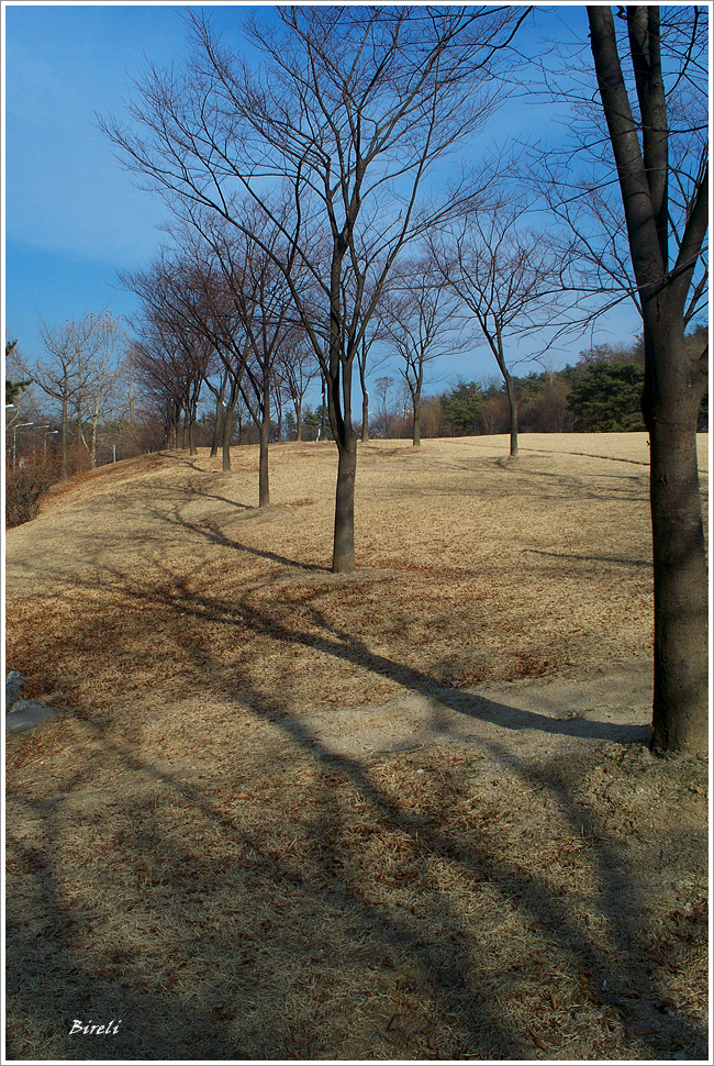 주로 나무와 하늘...