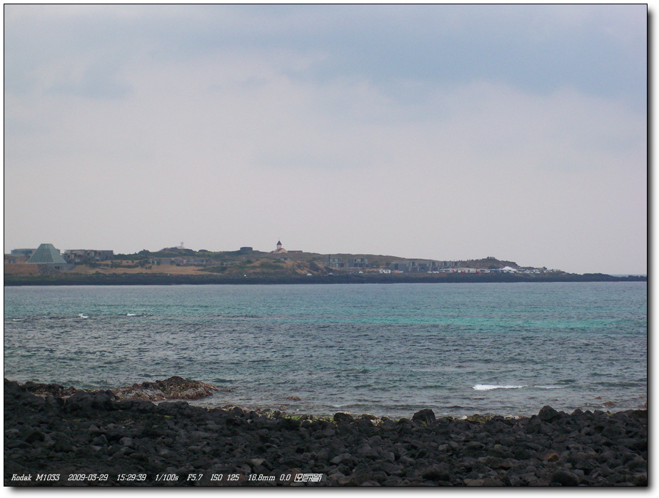 멀리 성산일출봉과 섭지코지 성당이 보이네요. 줌이 조금만 더 됐으면 하는 아쉬움이...