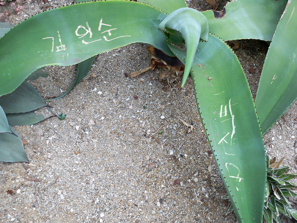 저번주에제주도에있는 여미지식물원에 다녀왔습니다. 사진에서 보시는것과 같이 식물에 상처를 줘서 이름을 써놨네요-_- 이렇게 하면 식물이 점점 크면서 흉터도 계속 커진다고 하더라구요. 누가 그랬는지 혼좀 내주세요!!