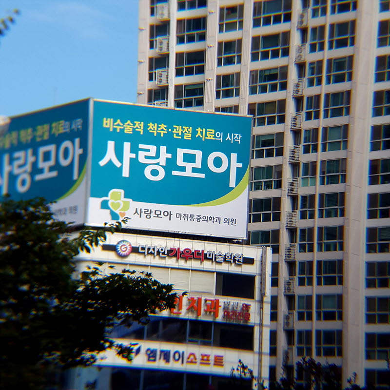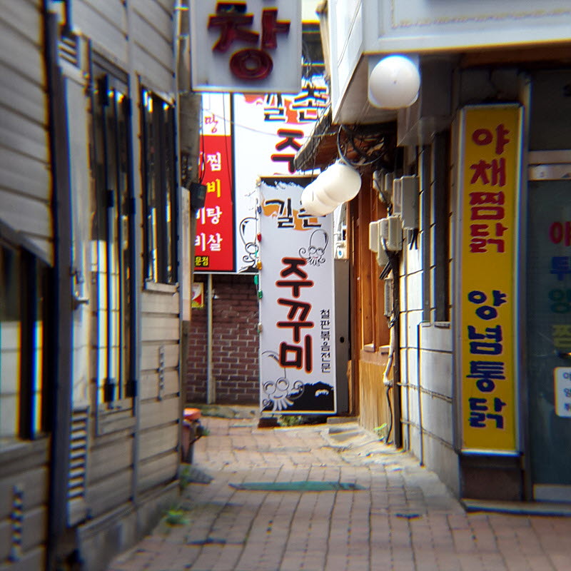 전봇대도... 건물도... 간판도... 전부 엿가락처럼 안으로 휘어져 있습니다ㄷㄷㄷ