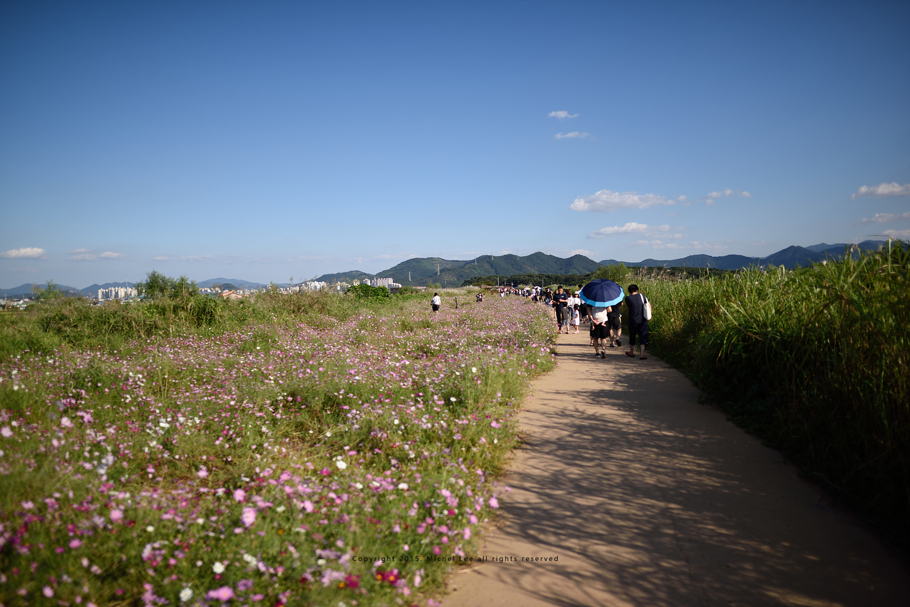 꽃밭에 두 여자 들어가 있고 한 여자가 저더러 사진 찍어달라길래