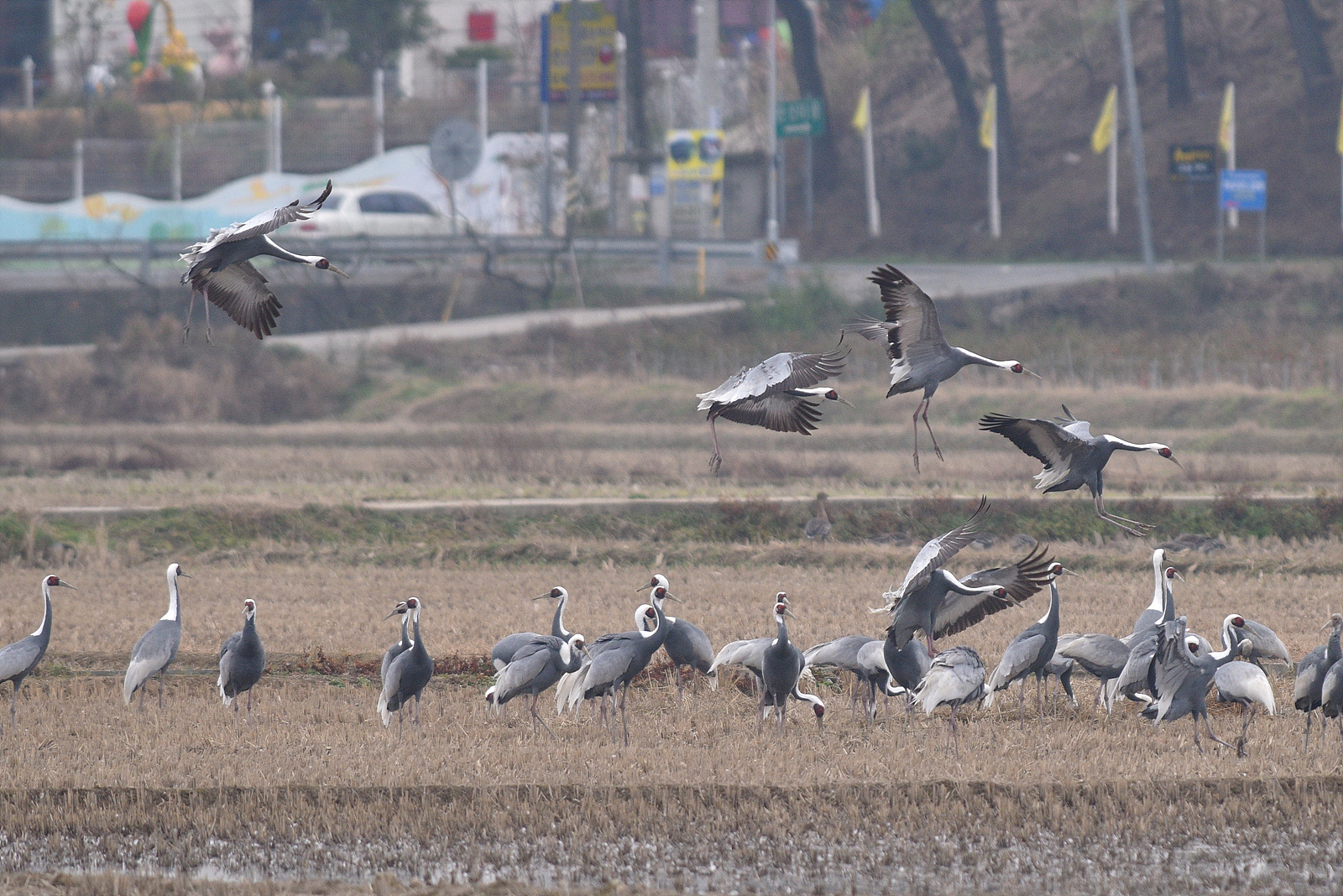 주남저수지 수위가 높아 재두루미가 밤에 편히 쉴곳이 없어, 좋은 장면을 만날 기회가 별로 없네요~~~