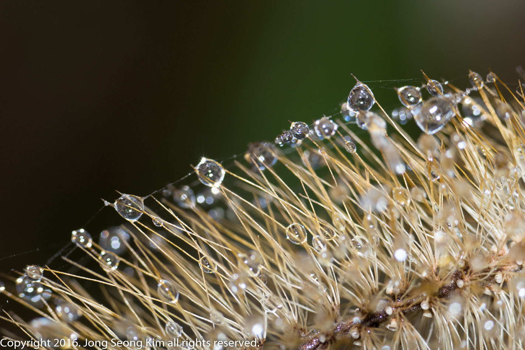 약간 늦은 아침 수크렁들에 맺힌 서리들이 녹아 물방울이 된 모습들입니다.