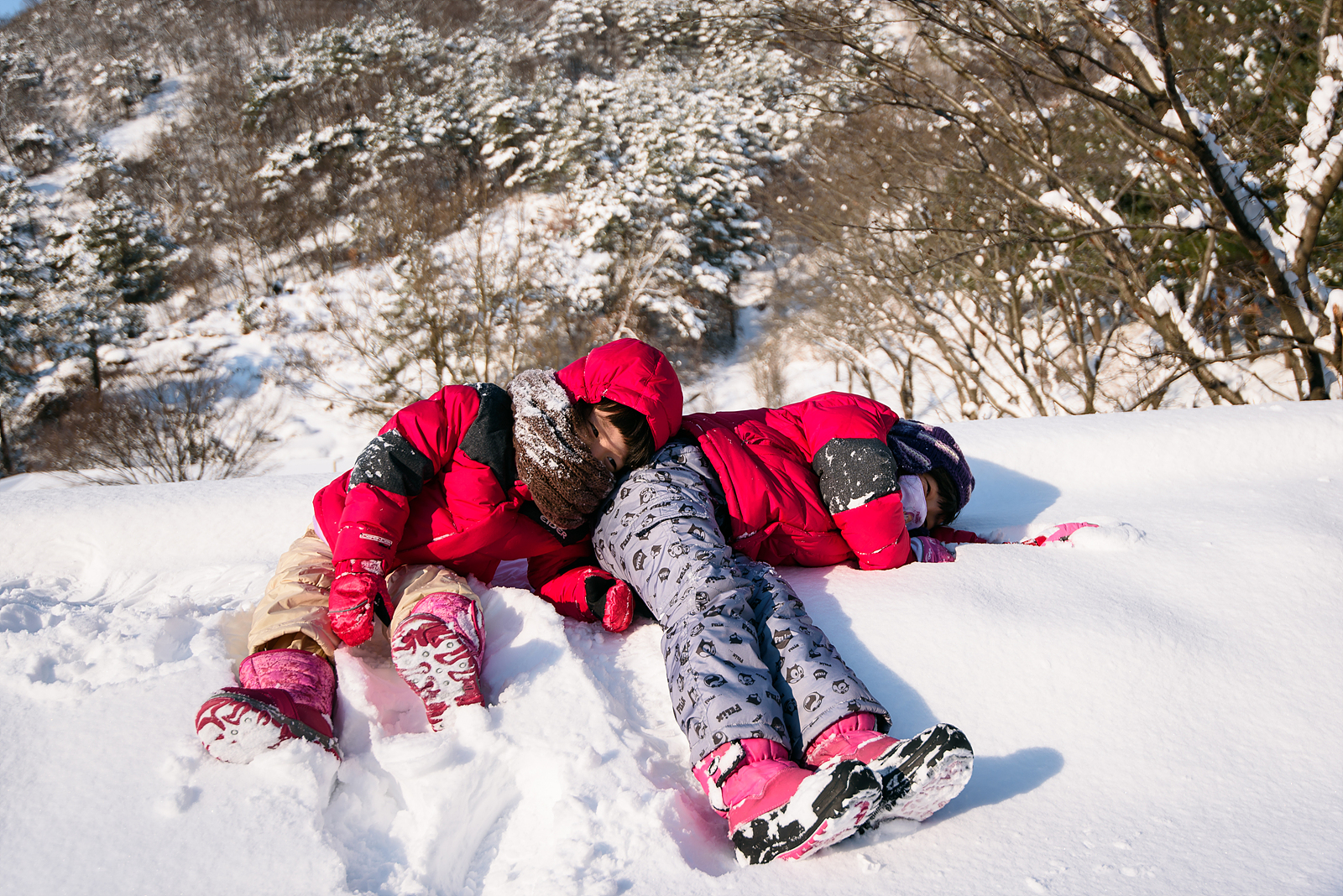 까까운 언덕에서 눈설매와 눈도장찍기등~~~ 열심히놀다보니 머리위에서 김이 모락모락 나더군요~~~