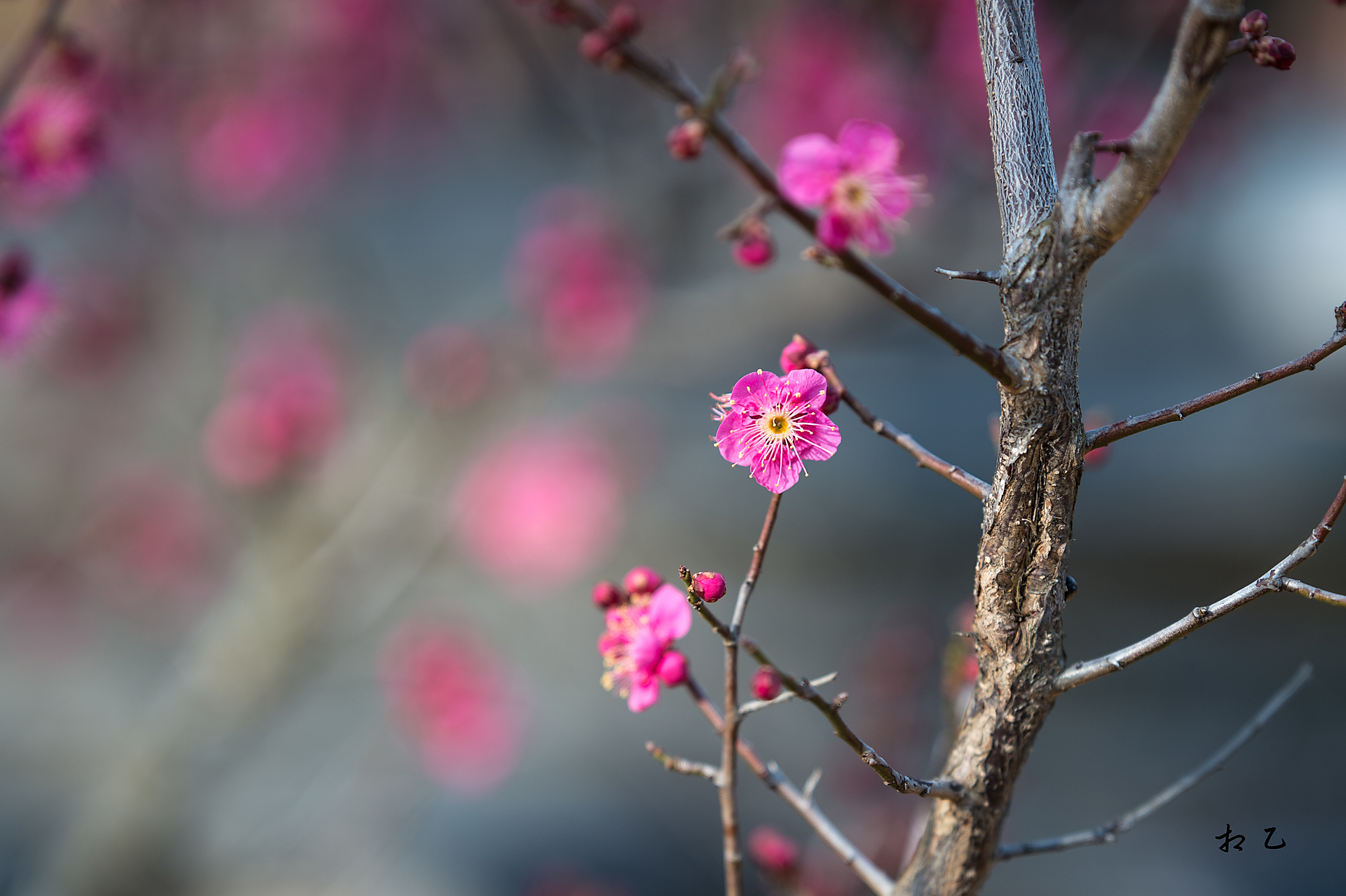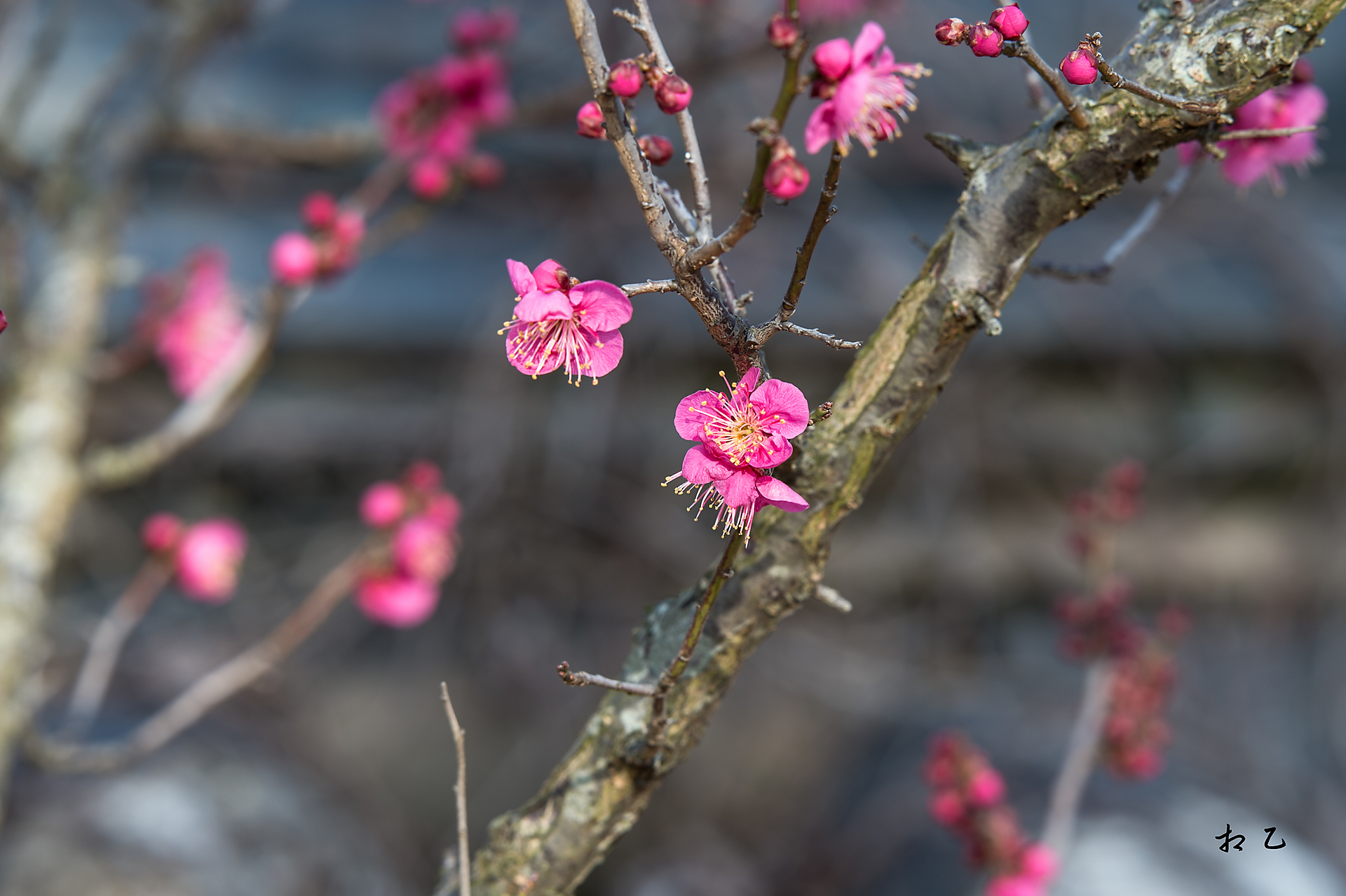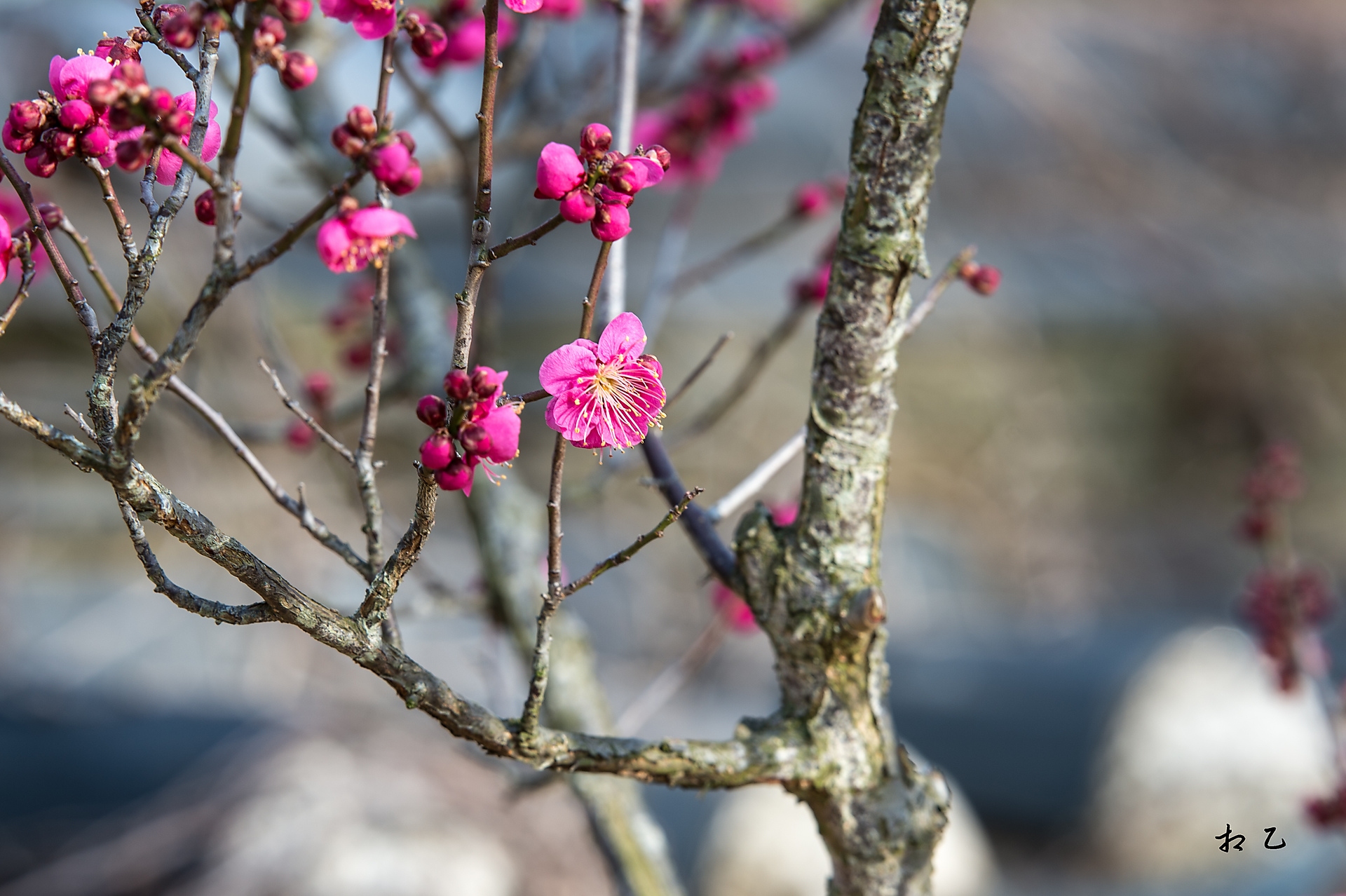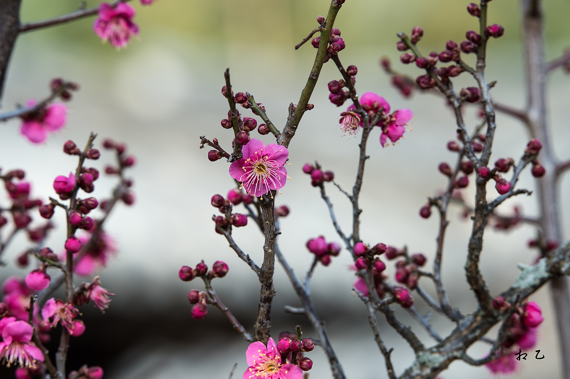 오늘 찬바람이 부는데도 그 고운 자태를 뽐내는 홍매화