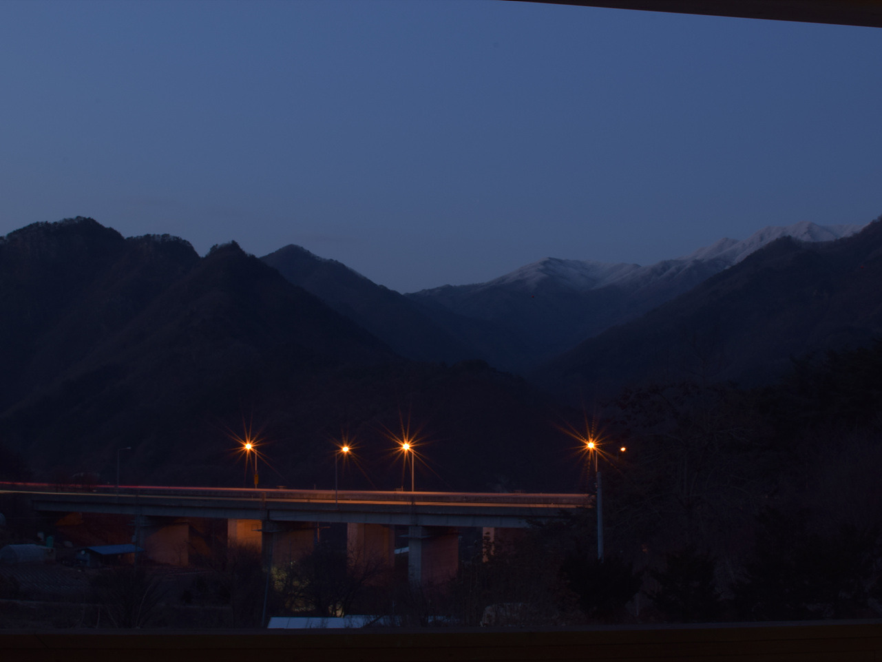 심히 고민중인 5300으로 꼭대기만 하얀 앞산을 찍어 봤습니다.