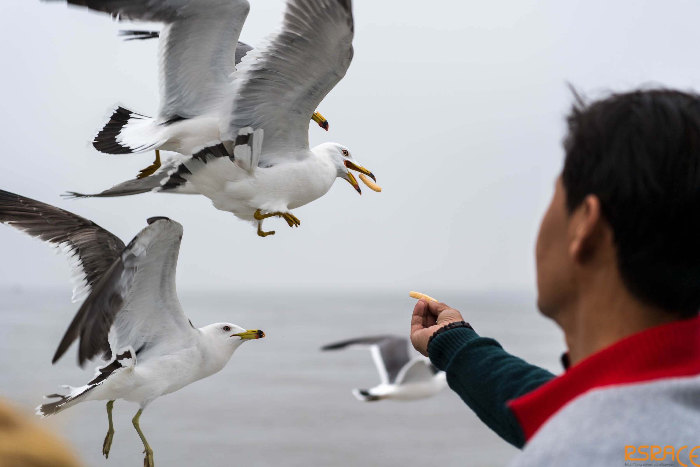 새우깡은 잘 받아 먹었지만, 발이 한쪽 불편하던 갈매기