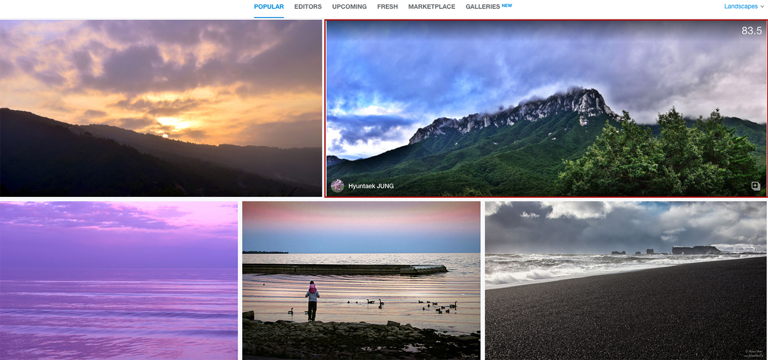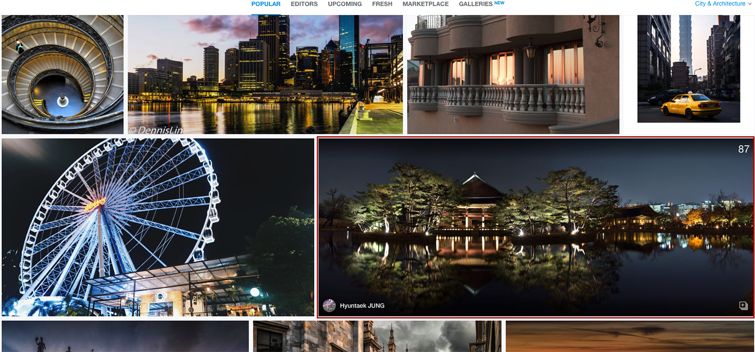 어제는 회사일이 오랜만에 한가해서 그동안 팝코에 올렸던 사진들 추려서 500px에 한 열댓장 올렸는데 메일에 500px 메일이 넘쳐나서 확인해보니 popular에 8개가 올랐네요! ㅎㅎ 이거 재밌네요!^^